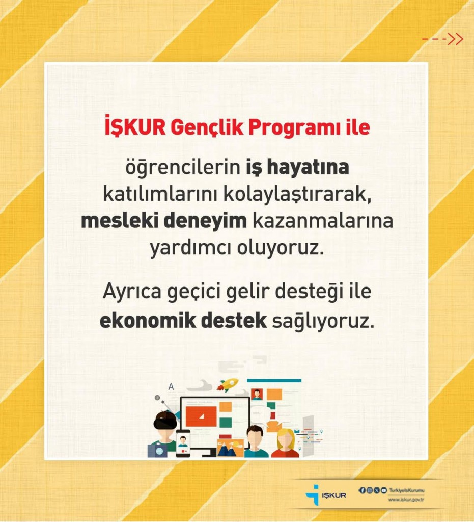 Mersin İŞKUR-Üniversitemiz işbirliğinde İŞKUR GENÇLİK PROGRAMI başvuruları 12-16 Şubat arasında alınacaktır. Başvuru ve detaylı bilgi için genclik.iskur.gov.tr