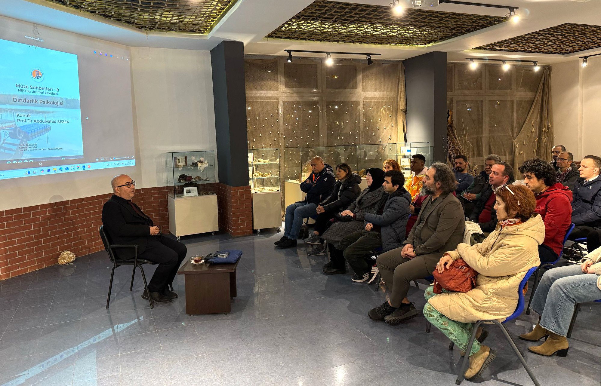 Üniversitemiz Deniz Canlıları Müzesi tarafından düzenlenen Müze Sohbetlerinin sekizincisi, 20 Şubat Perşembe günü “Dindarlık Psikolojisi” başlığıyla gerçekleştirildi. Üniversitemiz İlahiyat Fakültesi Dekanı Prof. Dr. Abdulvahid Sezen konuşmacı olarak katıldığı konferansta, dindarlığın insan psikolojisi üzerindeki etkileri bilimsel bir çerçeve içerisinde ele alındı.