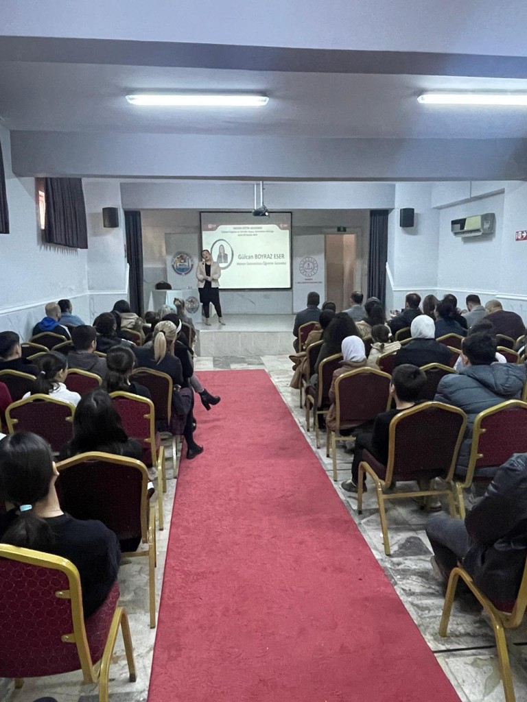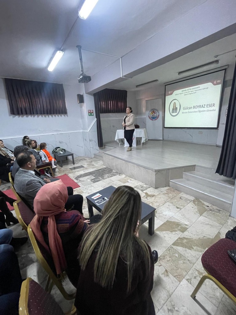 Üniversitemiz Rehberlik ve Psikolojik Danışmanlık Uygulama ve Araştırma Merkezinde görev yapan Öğr. Gör. Gülcan BOYRAZ ESER, Mersin Milli Eğitim Müdürlüğü tarafından yürütülen “Kadın Eli Değmiş, Belli!' projesi kapsamında, Mezitli İlçe Milli Eğitim Müdürlüğü iş birliğiyle velilere yönelik 'Kültürel Değerler ve Türk Aile Yapısı: Gelenekten Geleceğe' konulu bir seminere konuşmacı olarak katıldı.  6 Şubat 2025 tarihinde Mezitli Merkez ortaokulunda gerçekleştirilen seminere velilerin etkin katılımı ve interaktif sunum sayesinde keyifli bir etkileşim sağlandı.