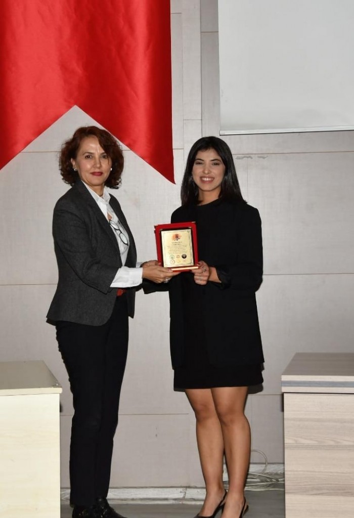 Eğitim Fakültesi Dekanı Prof. Dr. Mutlu Nisa Ünaldı Coral'ın konuklara plaket takdiminin ardından toplu fotoğraf çekimi ile etkinlik tamamlandı.