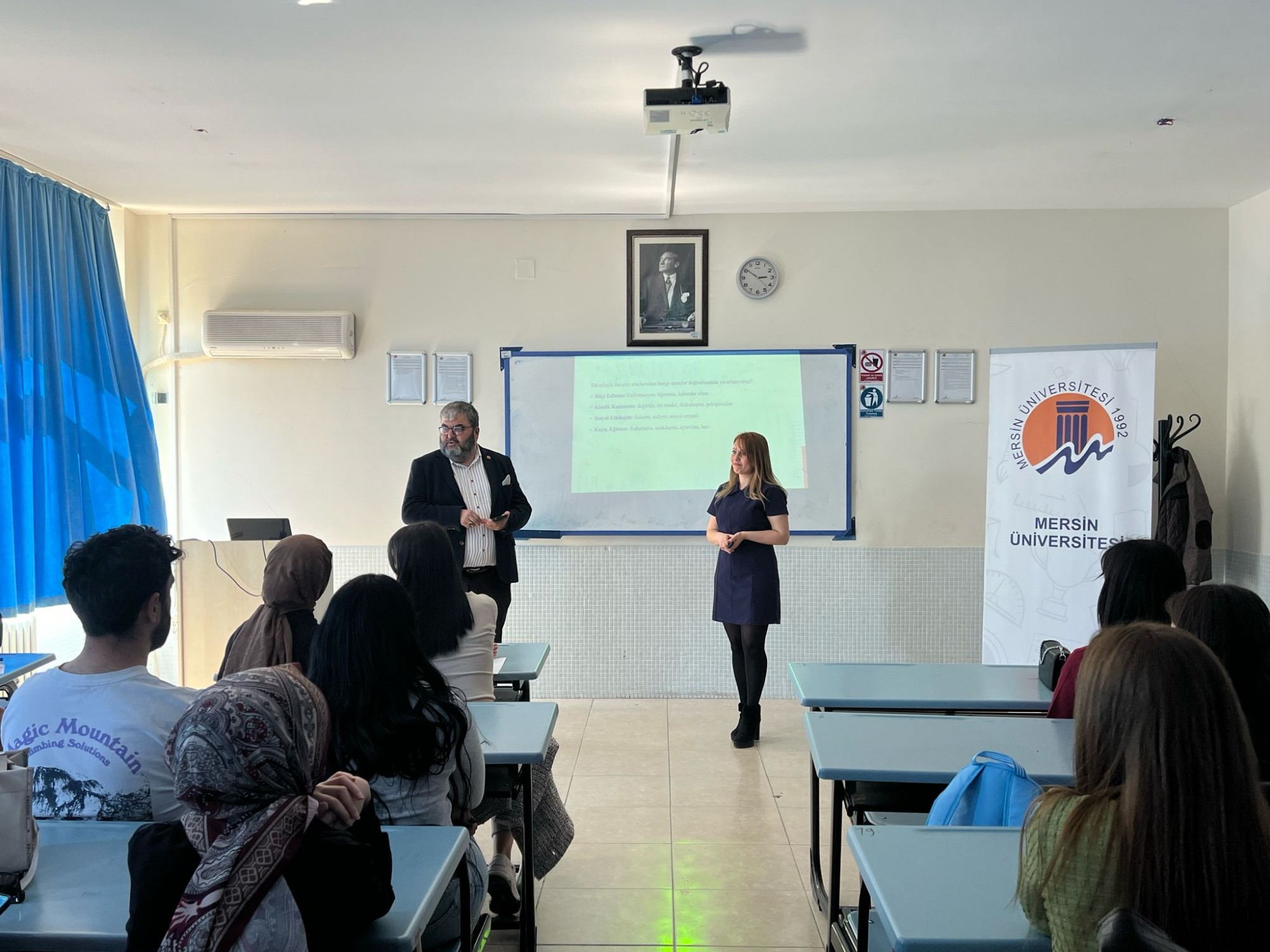 Etkinliğe, Sosyal Bilimler Meslek Yüksekokulu ve Kariyer Merkezi Müdürü Prof. Dr. İlhan Ege de katılarak öğrencilere hitap etti. Prof. Dr. İlhan Ege, teknolojiyi bilinçli kullanmanın bireysel ve toplumsal faydalarına değinerek bu tür etkinliklerin önemine dikkat çekti. Etkinlik, öğrencilerin yoğun katılım gösterdiği soru-cevap bölümüyle devam etti. Öğrenciler, merak ettikleri soruları yönelterek konuya dair daha derinlemesine bilgi edinme fırsatı buldu.