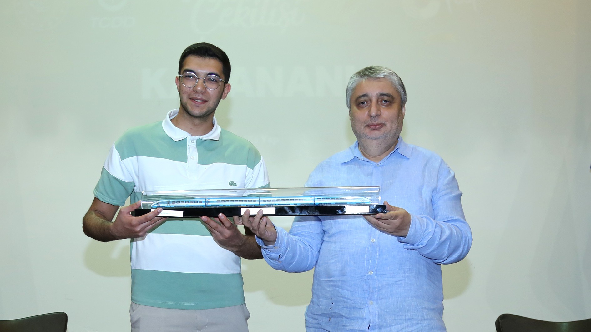 Söyleşide öğrencilerimize yönelik bir ödüllü soru cevap etkinliği gerçekleştirildi. Genel Müdür Veysi Kurt’un gerçekleştirdiği sunumla ilgili soruların sorulduğu etkinlik sonrasında doğru cevabı bilen öğrencilere TCDD Hızlı Tren Maketi hediye edildi.