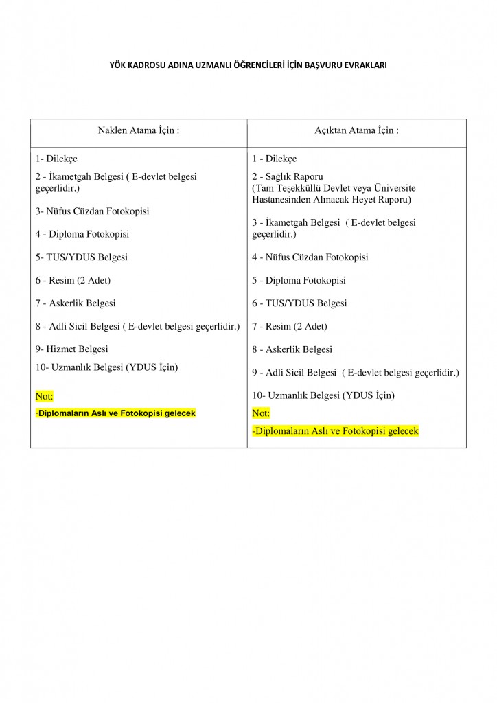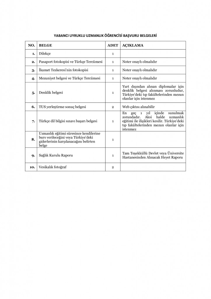 Tus ve Yabancı Uyruklu Uzmanlık Öğrencilerinin Başvuru Belgeleri