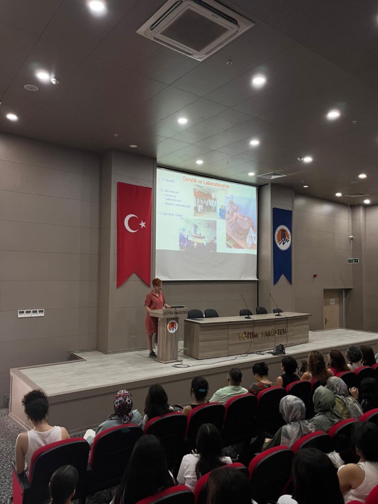 Açılış konuşmalarının ardından Ebelik Bölümü birinci sınıf Akademik Danışmanı Dr. Öğr. Üyesi Sevil GÜNER bölüm tanıtımını gerçekleştirdi. Bölüm vizyon, misyon ve amaçları, mezuniyet sonrası kariyer olanakları, bölüm öğretim elemanları, ders müfredatı, mezuniyet koşulları, ders programı, üniversitemiz uzaktan eğitim bilgi sistemi sistemi kullanımı, ilgili mevzuat, akademik danışmanlığın amacı, kapsamı ve bölüm akademik danışmanlık programı tanıtılarak oryantasyon programı sonlandırıldı.