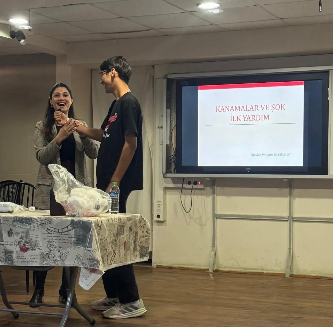 Öğrencilerin aktif katılımıyla gerçekleştirilen eğitimde, doğru ve hızlı müdahalenin hayati önem taşıdığı vurgulandı. Dr. Saltı, ilk yardım bilgisinin sadece sağlık çalışanları için değil, toplumun her kesimi için gerekli olduğuna dikkat çekerek, “Öğrencilerin bu yaşta ilk yardım konusunda bilinçlenmeleri, gelecekte hem kendi yaşamlarını hem de çevrelerindeki insanların yaşamlarını korumaları açısından son derece değerlidir” ifadelerini kullandı.