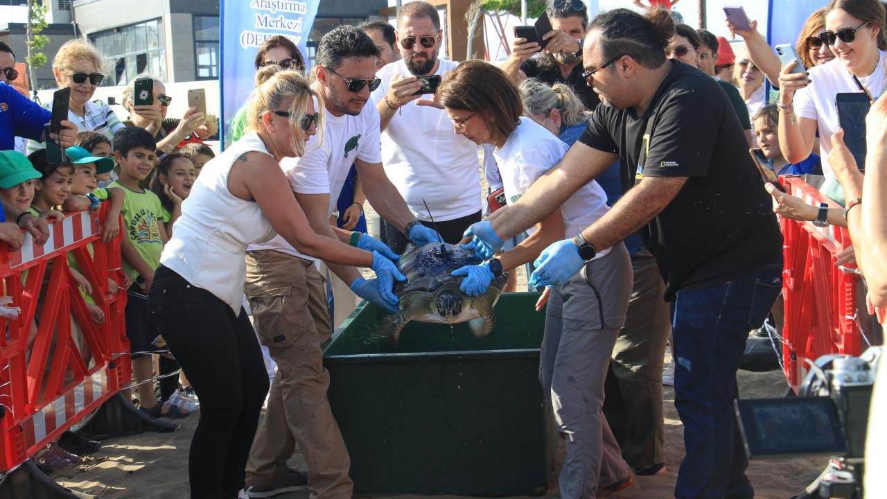 Mersin'de Uydu Takılan İki Adet Yeşil Deniz Kaplumbağası Denize Salındı