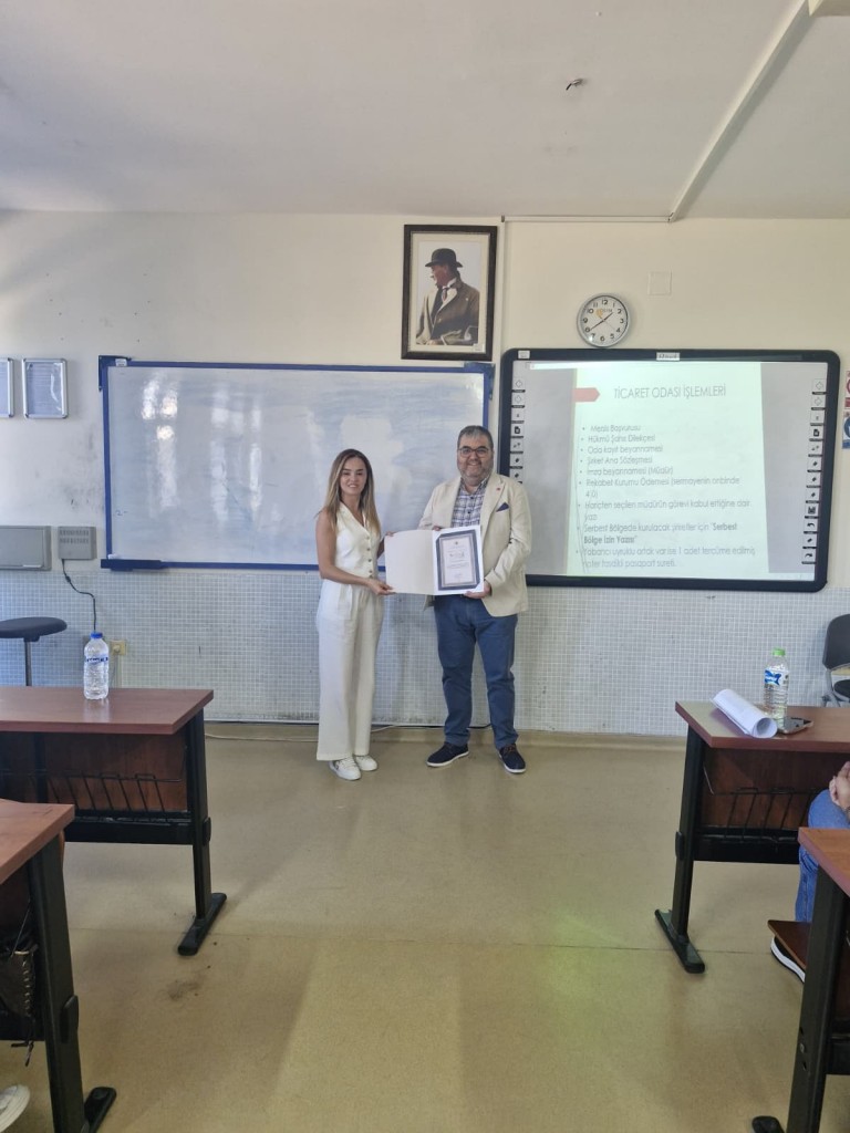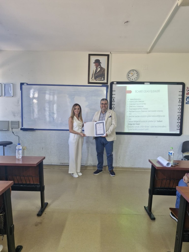 Sosyal Bilimler Meslek Yüksekokulu Muhasebe ve Vergi Uygulamaları Programı dönem faaliyetleri kapsamında gerçekleştirilen “Şirketlerin kuruluş işlemlerin mali müşavir çerçevesinde gerçekleştirilmesi” adlı etkinliğe SMMM ve Bağımsız Denetçi Asuman TÜRKOĞLU, bölüm başkanı Öğr. Gör. Dr. Emrah YILDIZ ve bölüm öğrencileri katılım sağladı. Asuman TÜRKOĞLU tarafından mali müşavirlik faaliyetleri arasında yer alan şirket kuruluş işlemleri sırasında neler yapılması gerektiği ve şirket kurulması için gerekli aşamalar aktarıldı. Ayrıca MERSİS sistemi üzerinden şirket kuruluşu uygulamalı olarak öğrencilerimize gösterildi.