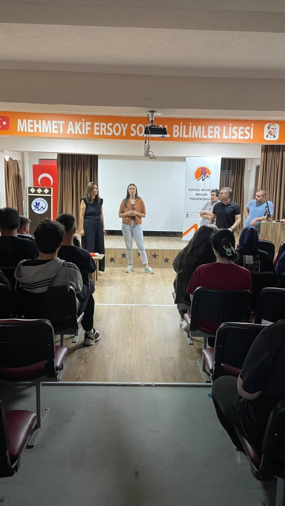 Mersin Üniversitesi Sosyal Bilimler Meslek Yüksekokulu İşletme Yönetimi Programı, 7 Ekim 2025 tarihinde Mehmet Akif Ersoy Sosyal Bilimler Lisesi’ni ziyaret ederek tanıtım etkinliği gerçekleştirdi. Tanıtıma, Bölüm Başkanımız Doç. Dr. Serpil Tomak ile birlikte bölüm öğretim elemanlarımız Dr. Öğr. Üyesi Necdet Sezal, Öğr. Gör. Dr. Adil İbin ve Öğr. Gör. Dr. Alaiddin Koşar katılım sağladı. Etkinlik kapsamında lise öğrencilerine işletme eğitiminin kapsamı, kariyer olanakları, mezuniyet sonrası iş alanları ve Mersin Üniversitesi’nin sunduğu akademik ve sosyal imkânlar hakkında bilgi verildi. Etkinliğe ayrıca İşletme Yönetimi Programı öğrencileri de katıldı. Öğrenciler, lise öğrencileriyle sohbet ederek kendi üniversite deneyimlerini, ders içerikleri ve staj süreçleriyle ilgili izlenimlerini paylaştılar. Samimi bir atmosferde gerçekleşen buluşmada, üniversite yaşamına dair merak edilen sorular da yanıtlandı. Ziyaret sonunda, üniversite tercih sürecinde işletme eğitiminin önemi vurgulandı.
