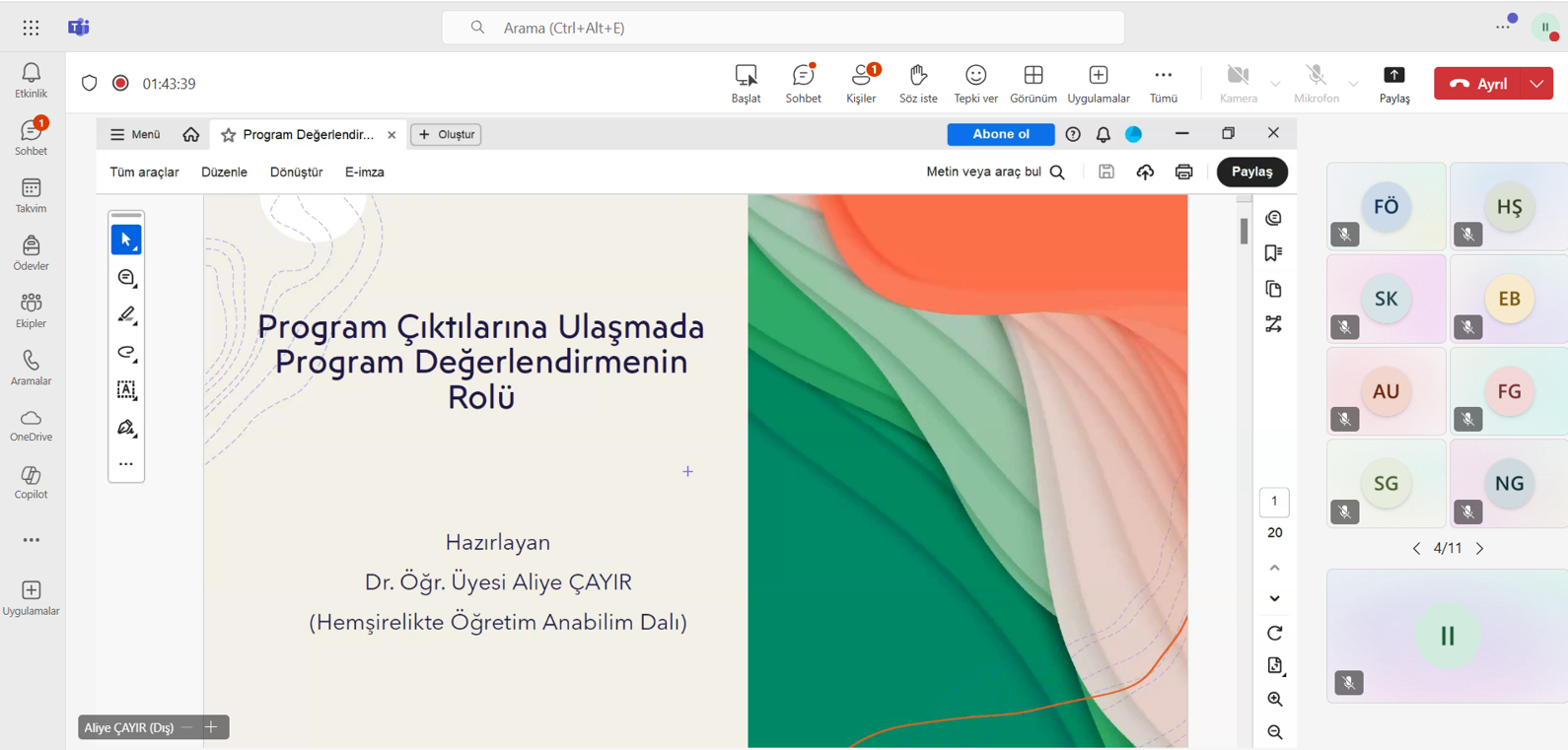 Programın ikinci bölümünde, Necmettin Erbakan Üniversitesi Hemşirelik Fakültesi Öğretim Üyesi Dr. Öğr. Üyesi Aliye ÇAYIR tarafından, program çıktılarının elde edilmesinde program değerlendirme süreçlerinin rolü ve işleyişi kapsamlı bir şekilde ele alınmıştır.