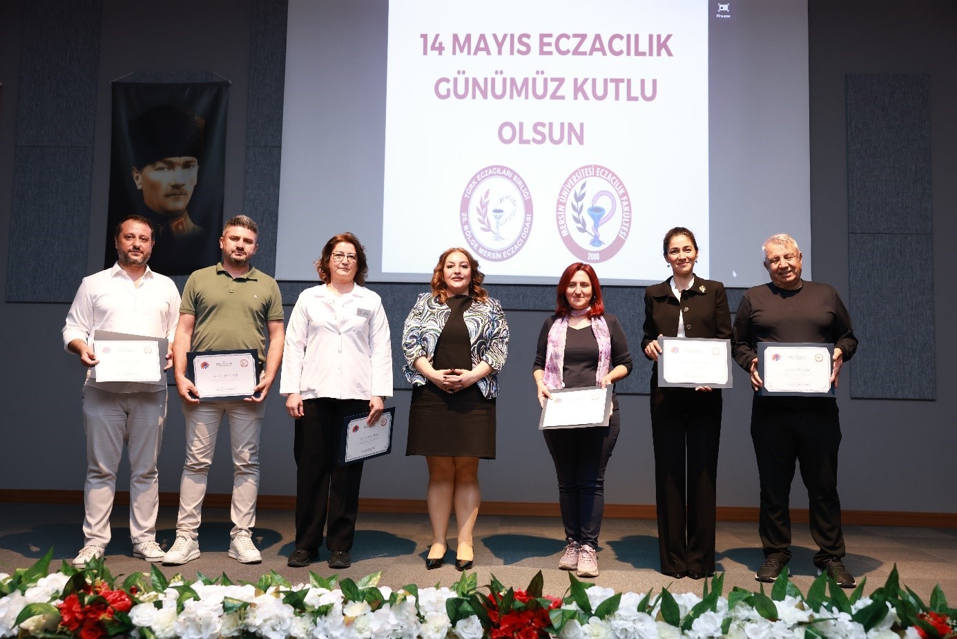 Rektör Yardımcımız Prof. Dr. Ahmet Hakan ÖZTÜRK törende “Bilimsel Eczacılığın 186. Yıldönümünü kutladığımız bu anlamlı günde hepiniz hoş geldiniz” diyerek sözlerine başladı. “14 Mayıs’ın, eczacılık faaliyetlerine ülkemizde ilk kez bilimsel bir nitelik kazandıran tarih olduğunu, eczacıların ülkemizin sağlık ordusu içerisinde çok önemli bir yere sahip ve pandemi ile depremde toplum sağlığı için en hızlı harekete geçen meslek gruplarının başında geldiğini belirtti.” “Mersin Üniversitesi Eczacılık Fakültesi’nin kurulduğu ilk günden itibaren hızla geliştiğini, eğitim programının ikinci kez akredite edilmesiyle başarısını taçlandırdığını” ifade eden Rektör Yardımcımız Prof. Dr. Ahmet Hakan ÖZTÜRK, Fakülte yönetimi ile öğretim üyelerini tebrik ederek, TEB 25. Bölge Mersin Eczacı Odasına iş birlikleri için teşekkür etti.