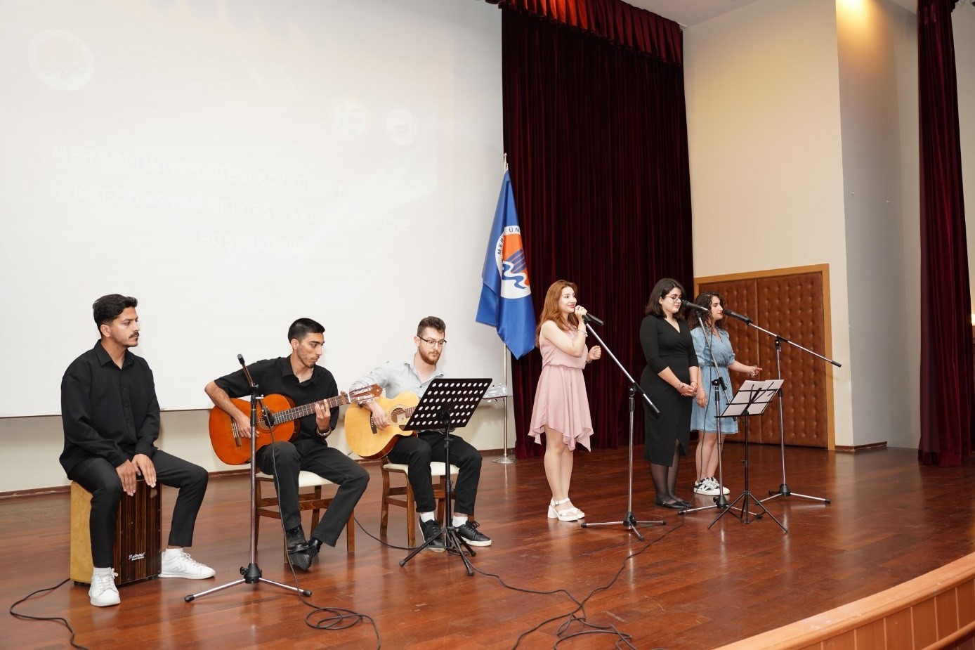 Akreditasyon Belgesi Takdim Töreni’ne Rektörümüz Prof. Dr. Erol YAŞAR, Fakültemiz Dekanı Prof. Dr. Necmiye CANACANKATAN, ECZAKDER Başkanı Prof. Dr. M. Seçkin ÖZDEN, ECZAKDER Genel Sekreteri Prof. Dr. Benay Can EKE, Türk Eczacıları Birliği Merkez Heyeti Üyesi Uzm. Ecz. Özgün SAĞIR, 25. Bölge Mersin Eczacı Odası Başkanı Ecz. Aliye AKGÜL AYDIN, Güney Ecza Kooperatifi Yönetim Kurulu Başkanı Ecz. Tarkan BİR, dekanlarımız, enstitü ve yüksekokul müdürlerimiz, daire başkanlarımız, akademik ve idari personel, eczacılar ve öğrenciler katılım sağladı.