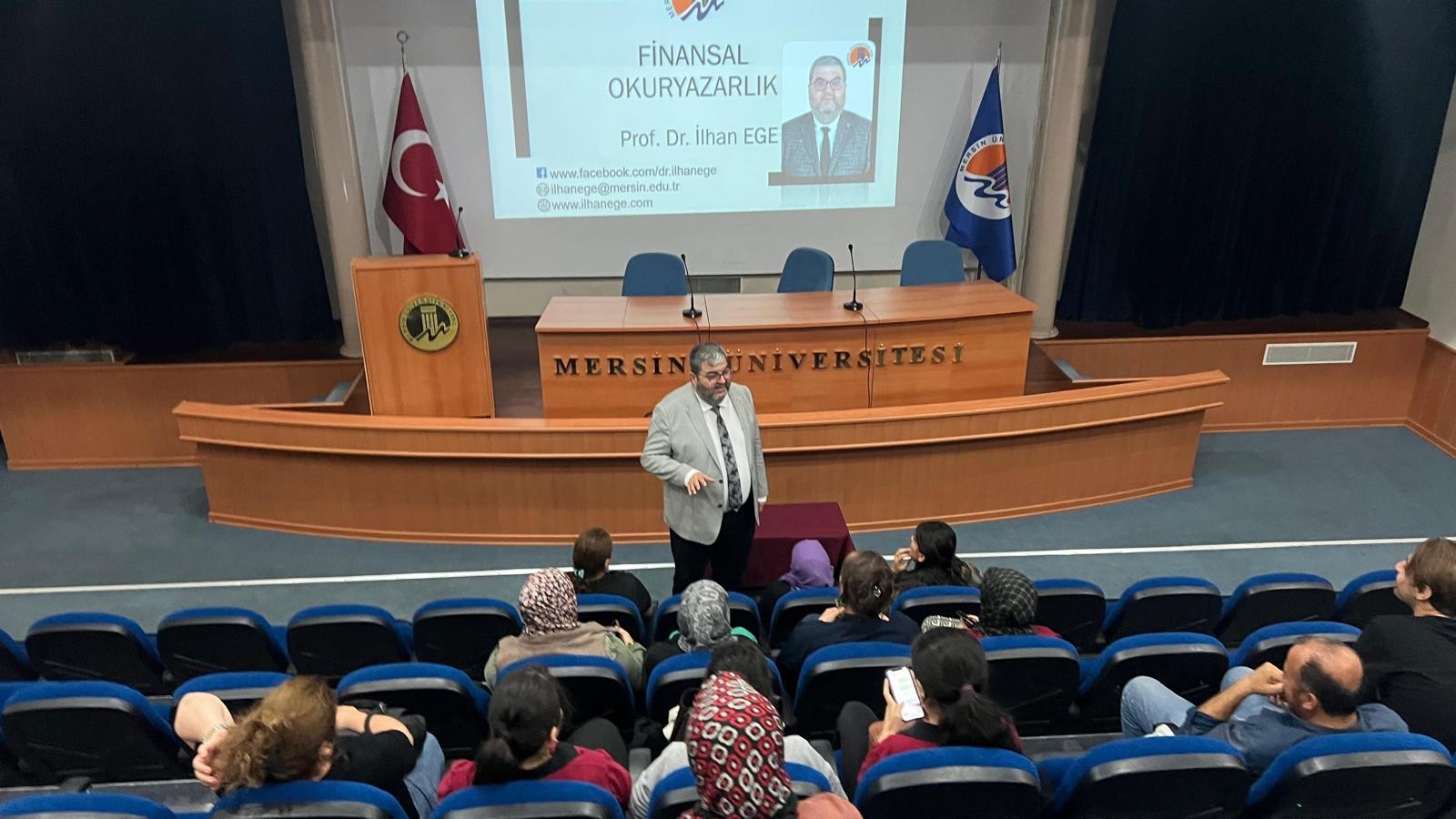 Mersin Üniversitesi Hizmet İçi Eğitim Müdürlüğü tarafından düzenlenen “Finansal Okuryazarlık Eğitimi”, Kariyer Merkezi Müdürü Prof. Dr. İlhan Ege tarafından gerçekleştirildi. Eğitime, üniversitemizde İŞKUR İşbaşı Eğitim Programı kapsamında görev yapan personeller katılım sağladı. Prof. Dr. Ege, eğitimde finansal okuryazarlığın bireylerin hem kişisel hem de profesyonel yaşamlarında bilinçli kararlar alabilmeleri açısından önemine vurgu yaptı. Katılımcılara bütçe yönetimi, tasarruf, yatırım araçları, gelir-gider dengesi ve finansal risk yönetimi gibi konularda bilgi ve örnekler aktarıldı. Eğitim, soru-cevap bölümüyle tamamlanırken, katılımcılar finansal farkındalıklarını artırma fırsatı buldu.