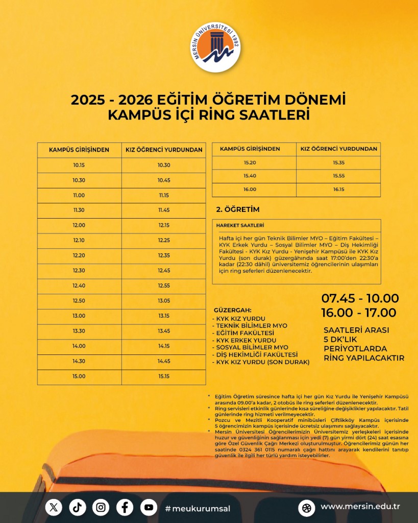 Kampüs İçi Ring Saatleri