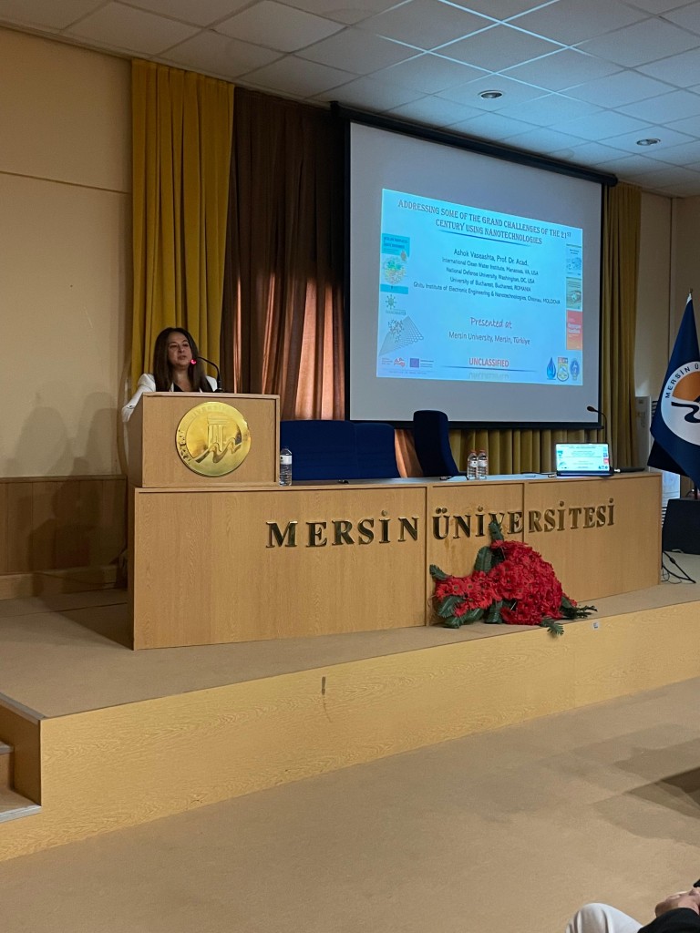 Mühendislik Fakültesi Konferans Salonu’nda 27 Ekim 2025 tarihinde gerçekleştirilen seminerde, International Clean Water Institute (USA) araştırmacısı Prof. Dr. Ashok Vaseashta, “Addressing Some of the Grand Challenges of the 21st Century Using Nanotechnologies” başlıklı bir sunum yaptı.