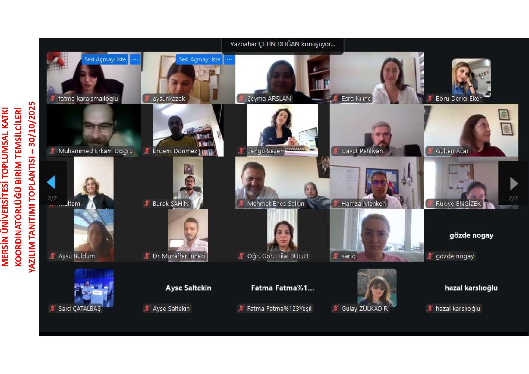 Mersin Üniversitesi Toplumsal Katkı Koordinatörlüğü Birim Temsilcileri Yazılım Tanıtımı Toplantısı