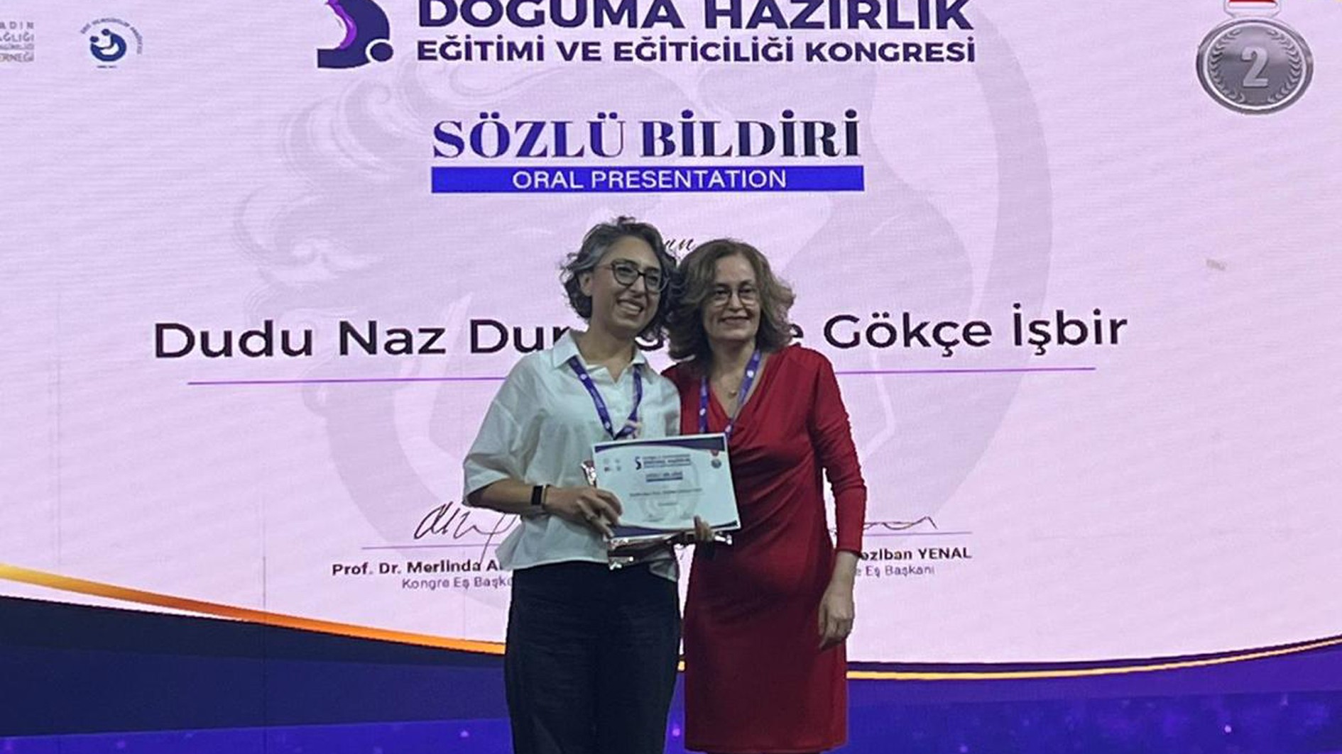 Üniversitemiz Sağlık Bilimleri Fakültesi Ebelik Bölümü öğretim üyesi Prof. Dr. Gözde Gökçe İsbir ve yüksek lisans öğrencisi Uzm. Ebe Dudu Naz Dur, 3. Uluslararası 5. Ulusal Doğuma Hazırlık Eğitimi ve Eğiticiliği Kongresi’nde “Doğumda Travma Bilgisi İçeren Destekleyici Bakımın Psikolojik Sonuçlara Etkisi: Randomize Kontrollü Çalışma” başlıklı bildirileri ile sözel bildiri dalında ikincilik ödülüne layık görüldü.