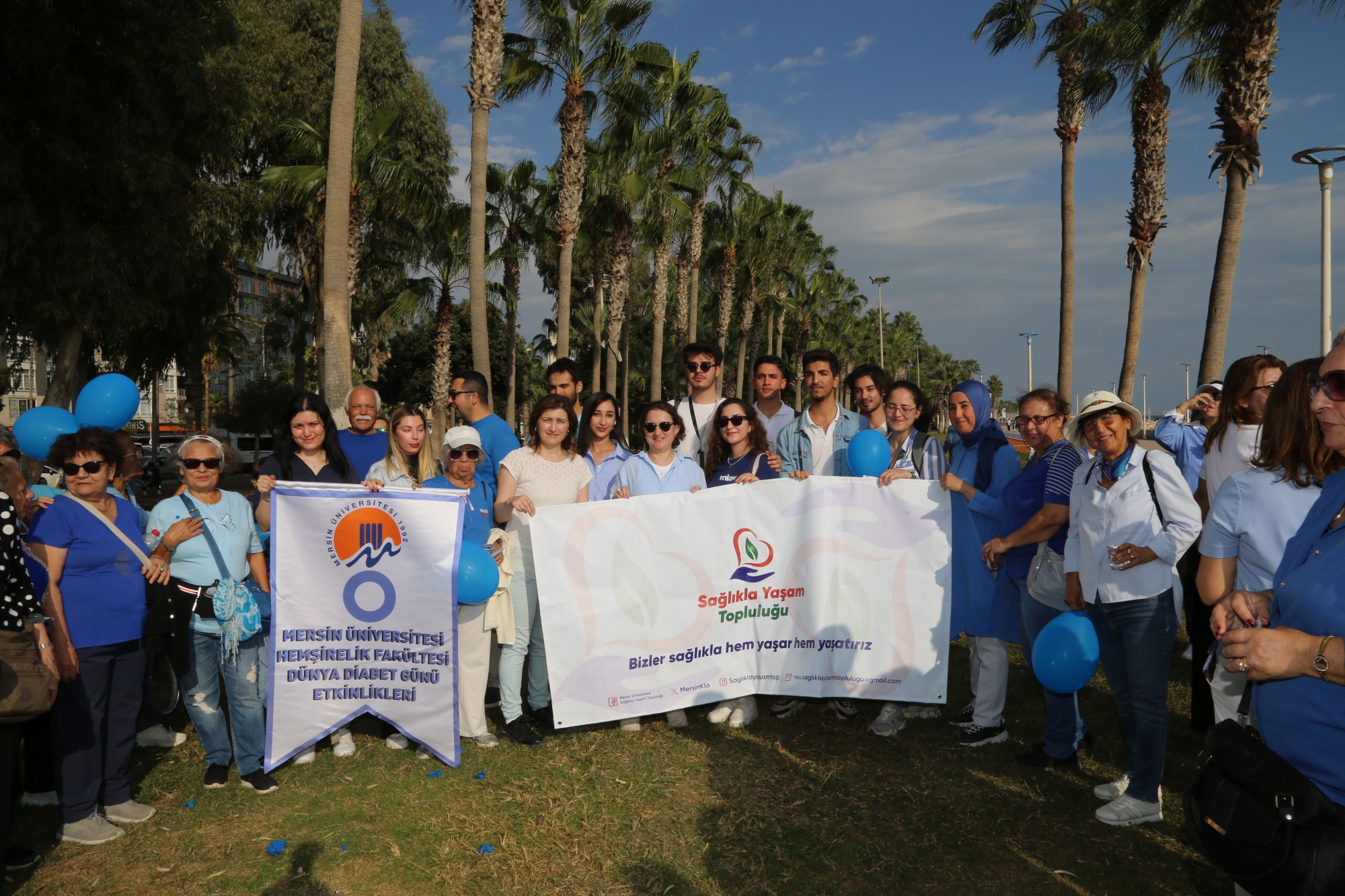 Diyabet Haftası kapsamında, Mersin Üniversitesi Hemşirelik Fakültesi İç Hastalıkları Hemşireliği Anabilim Dalı, Sağlık Bilimleri Fakültesi Beslenme ve Diyetetik Bölümü ile Sağlıkla Yaşam Topluluğu iş birliğiyle anlamlı bir “Mavi Adımlar Farkındalık Yürüyüşü” düzenlendi.