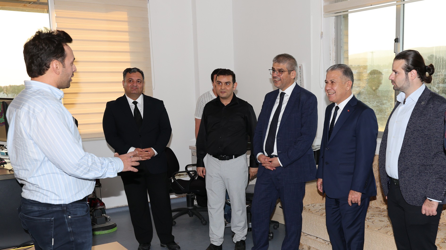 Daha sonra Teknopark’a geçen heyeti, Teknopark Müdürü Mehmet İlbaş karşıladı. Teknopark bünyesindeki firmalarla bir toplantı gerçekleştiren heyet, ardından burada faaliyet gösteren firmaları ziyaret ederek yetkililerden bilgi aldı.