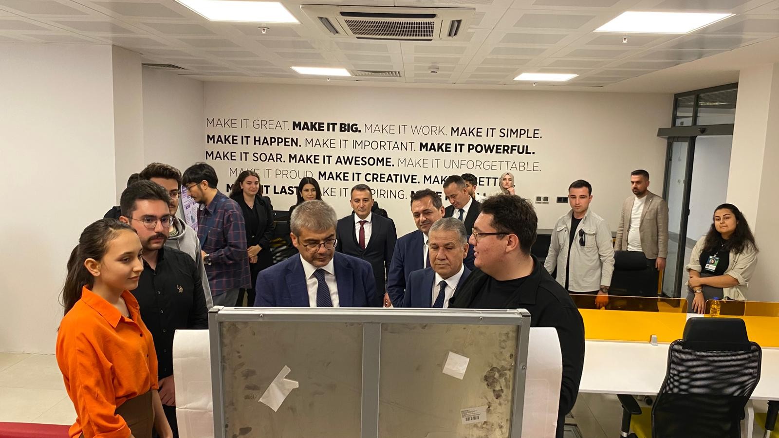 Ziyaret kapsamında heyet, merkezimizdeki genç girişimcilerle tanışarak projelerini yerinde inceledi, çalışmalar hakkında bilgi aldı ve girişimcilerimizle samimi bir sohbet gerçekleştirdi.
