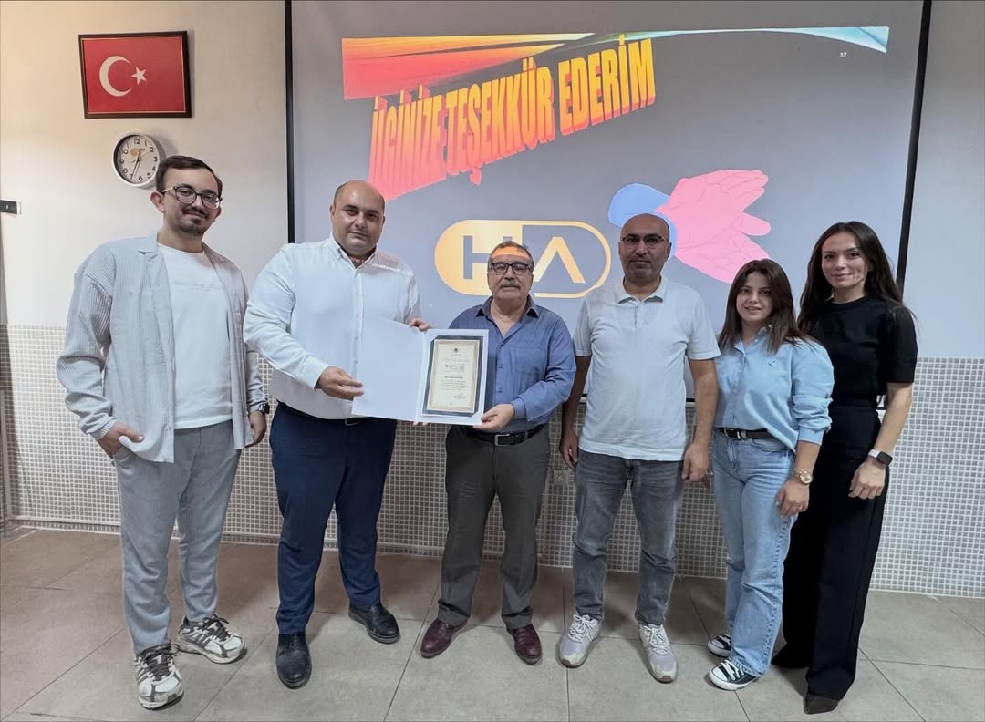 Söyleşi bitiminde yüksekokul müdürümüz Öğr. Gör. Bilge Kaan ERCAN, Halim Altınışık’a teşekkür belgesini takdim etmiştir.