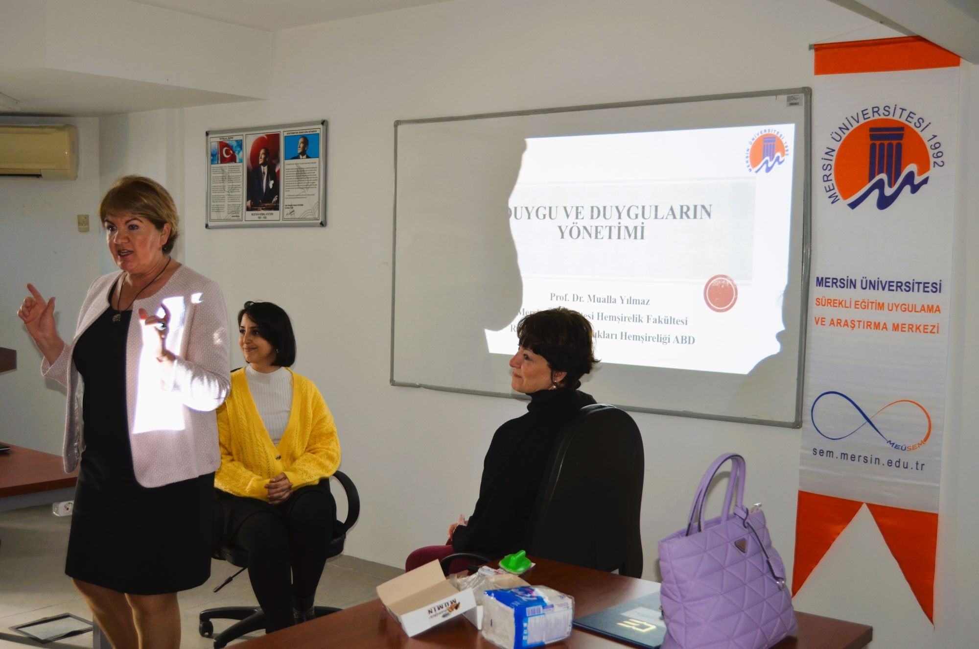 Mersin Üniversitesi Sürekli Eğitim Uygulama ve Araştırma Merkezi (MEÜSEM) etkinliklerine devam ediyor. Prof. Dr. Mualla YILMAZ tarafından 06 Mart 2024 Çarşamba Günü " Uygulamalı Duyguları Yönetme " etkinliği MEÜSEM dersliklerinde yapıldı. “Uygulamalı Duyguları Yönetme“ etkinliği katılımcıları memnuniyetlerini ifade etti. Merkez Müdürü Prof. Dr. Emine YILMAZ BOLAT, bu memnuniyetlere istinaden talep durumuna göre etkinliğin tekrarlanacağını belirtti.