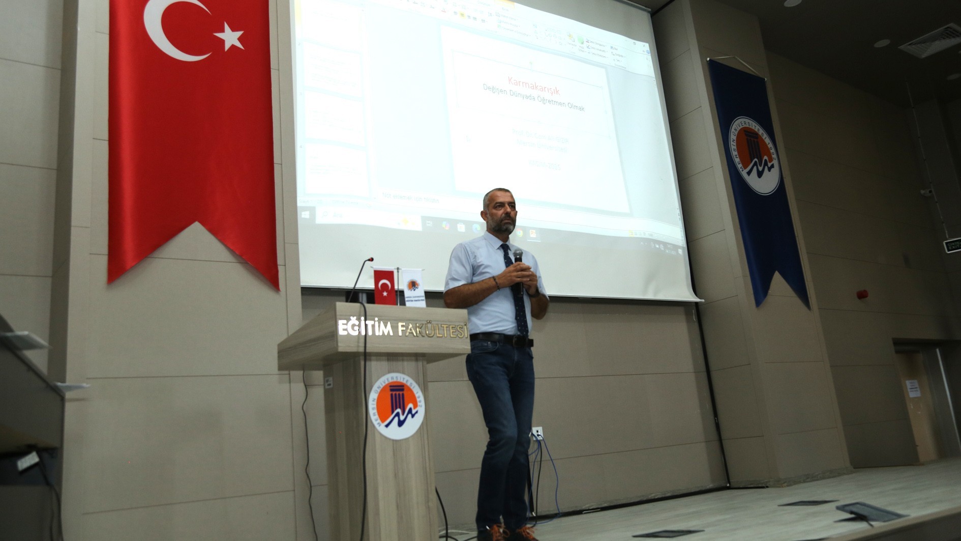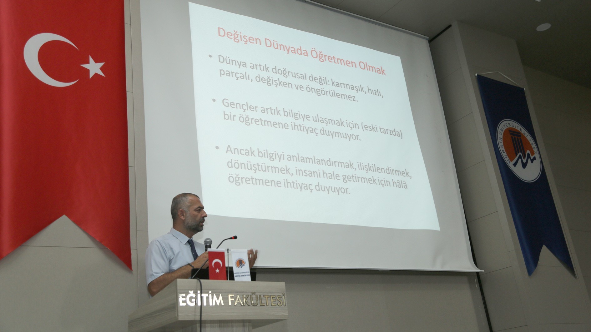 Ödül töreninin ardından Prof. Dr. Cem Ali Gizir, “Değişen Dünyada Öğretmen Olmak” başlıklı konferans verdi. Prof. Dr. Gizir, çağın gerektirdiği öğretmenlik becerileri, eğitimde dijital dönüşüm ve mesleğin geleceğine dair önemli değerlendirmelerde bulundu. Konferansın sonunda Prof. Dr. Gizir’e, Dekan Prof. Dr. Ünaldı Coral tarafından teşekkür belgesi sunuldu.