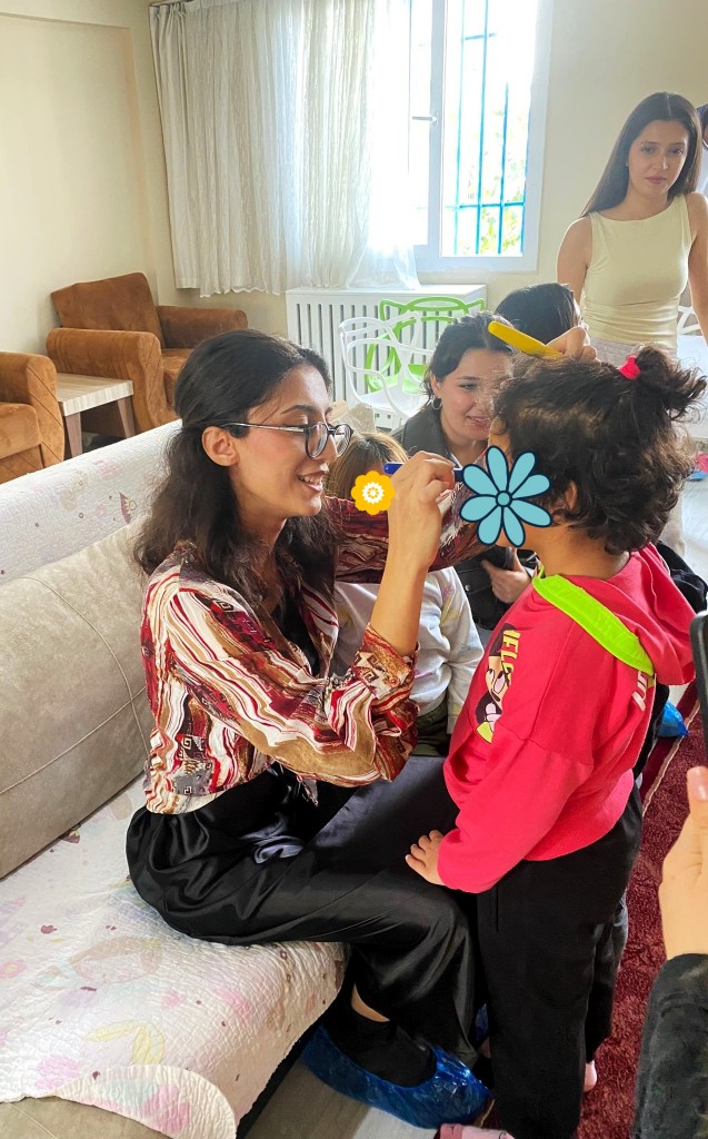 Ziyaret boyunca çocuklara yüz boyama, boyama çalışmaları, balon oyunları gibi çeşitli etkinlikler düzenlendi. Bir palyaçonun da katılımıyla renklenen programda çocuklar doyasıya eğlenirken, öğrencilerimiz de çocuklarla birebir iletişim kurma ve sosyal beceri geliştirme imkânı buldu.