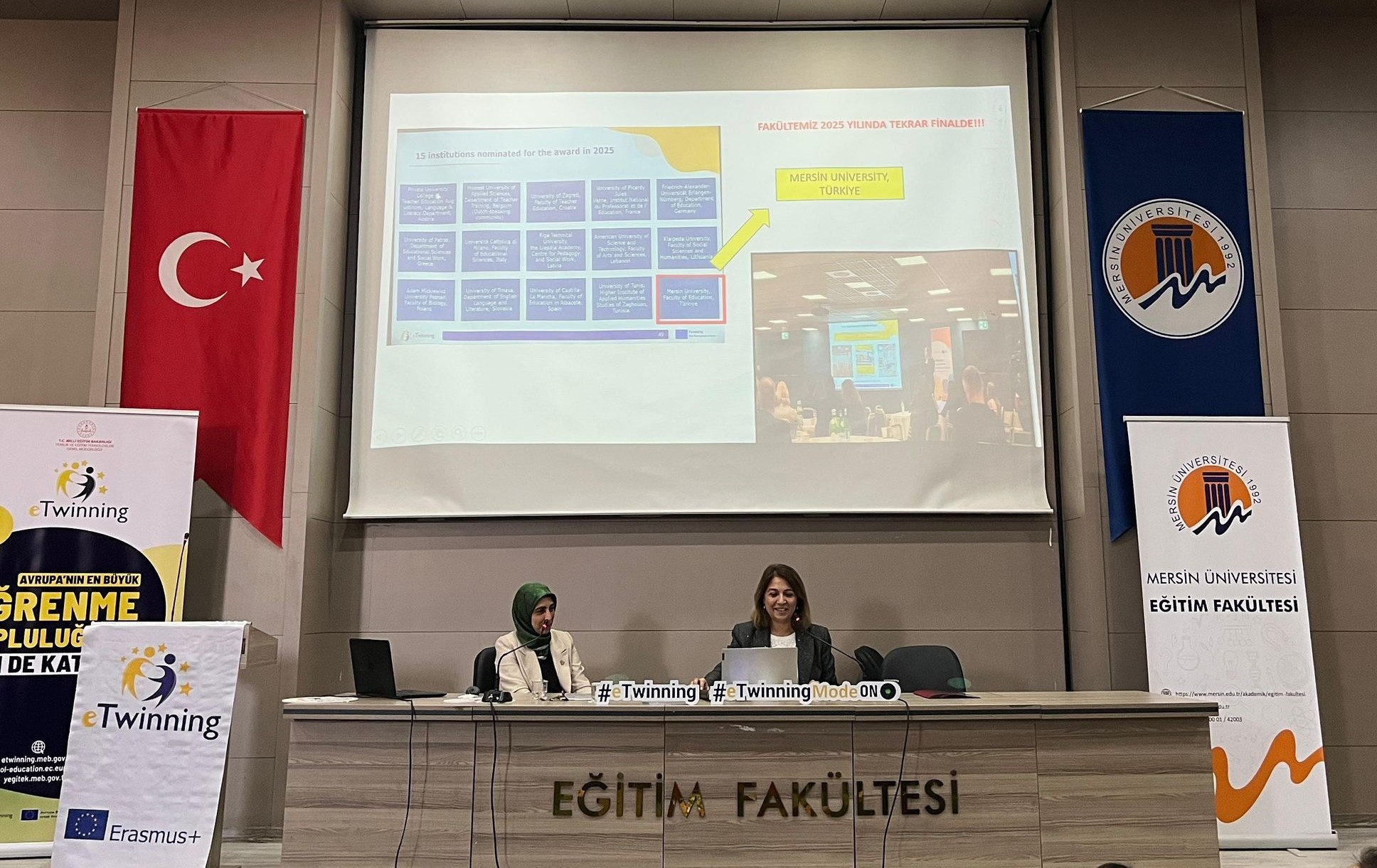Fakültemiz öğrencilerine yönelik olarak eTwinning çalışmalarına ilişkin bilgilendirme toplantısı gerçekleştirildi. eTwinning ITE Koordinatörü öğretim üyemiz Doç. Dr. Ümit İzgi Onbaşılı ve Mersin İl eTwinning Koordinatörü Bircan Keleş tarafından yürütülen toplantı, öğretmen adaylarının ulusal ve uluslararası proje kültürünü geliştirmeyi amaçladı. Fakültemizin tüm programlarından öğretmen adaylarının katılım sağladığı etkinlik, yoğun ilgi gördü.