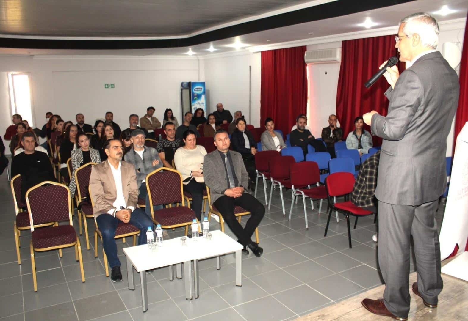 3 Aralık Çarşamba günü Prof. Dr. Emrah Uysal tarafından gerçekleştirilen “Çocuğun Sanatsal Gelişimi” konulu söyleşi, Şehit Özkan Demir Ortaokulu Konferans Salonu’nda, Mezitli İlçe Millî Eğitim Şube Müdürü Çetin Çınğı ile Mezitli İlçe Millî Eğitim Müdürlüğüne bağlı okullarda görev yapan görsel sanatlar öğretmenleri ve rehber öğretmenlerin katılımıyla gerçekleştirildi.