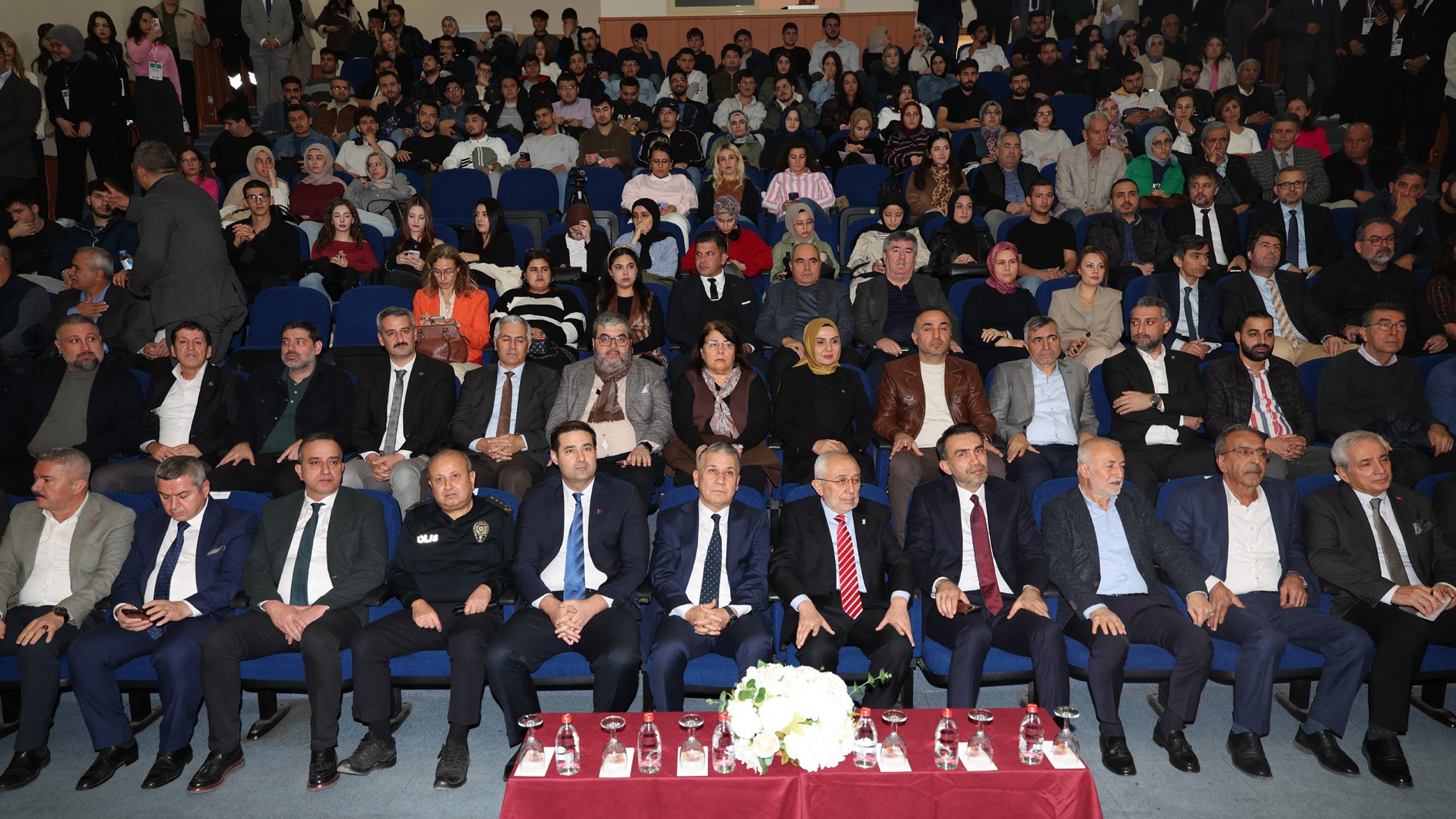 Saygı duruşu ve İstiklal Marşı ile başlayan konferansa; Rektörümüz Prof. Dr. Erol Yaşar, Mezitli Kaymakamı Turgay Gülenç, Türkiye Dil ve Edebiyat Derneği Genel Başkanı Ekrem Erdem, POMEM Müdürü Mustafa Erdal Cılasın, Rektör Yardımcımız Prof. Dr. Mehmet Çağrı Çetin, Adalet ve Kalkınma Partisi Mersin İl Başkanı Adem Aldemir, Sosyal Hizmetler İl Müdürü Naci Yılmaz, Memur-Sen İl Başkanı Ertuğrul Yıldız, Eğitim-Bir-Sen Mersin 2 No’lu Şube Başkanı Dr. Öğr. Üyesi Ömer Özbilen, Türkiye Dil ve Edebiyat Derneği Mersin Şubesi Başkanı Muharrem Köse, Türkiye Dil ve Edebiyat Derneği Mersin Şubesi Kurucu Başkanı Dr. Mustafa Erim, il müdürleri, siyasi parti ve sivil toplum kuruluşlarının temsilcileri, Rektör Danışmanlarımız, dekanlarımız, müdürlerimiz, daire başkanlarımız, akademik ve idari personelimiz ile öğrencilerimiz katılım sağladı.