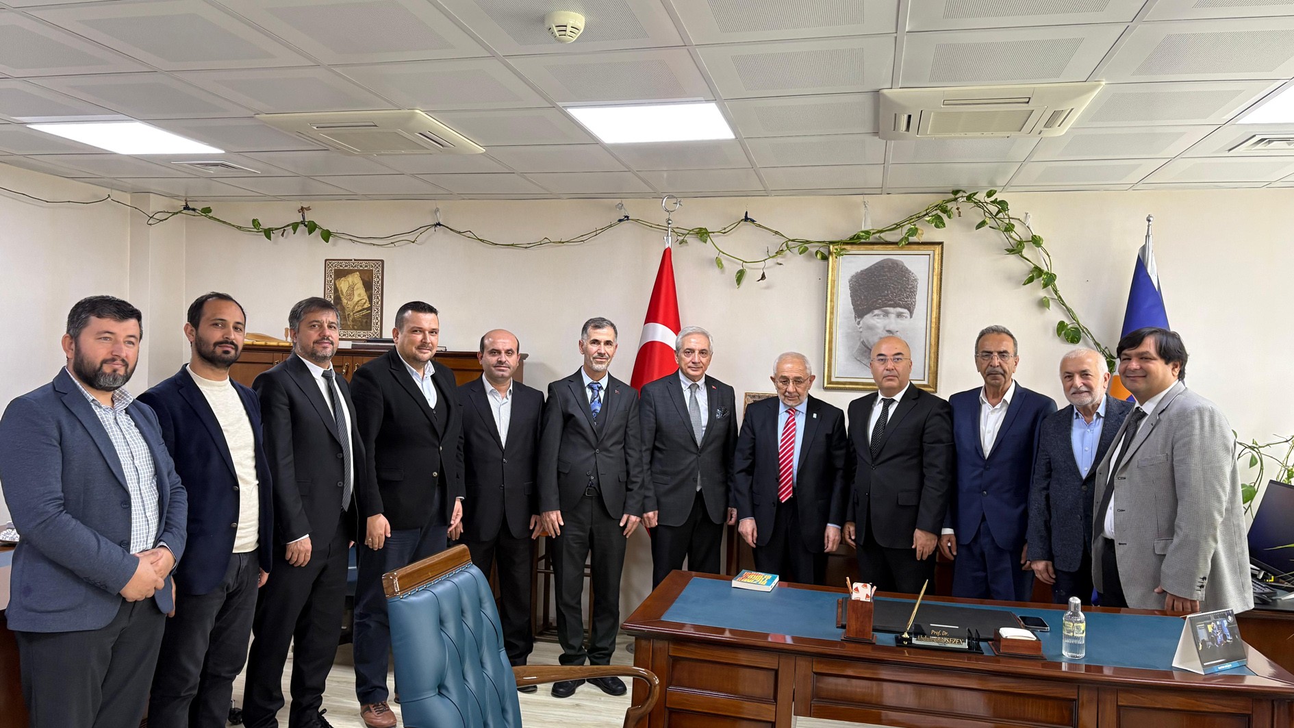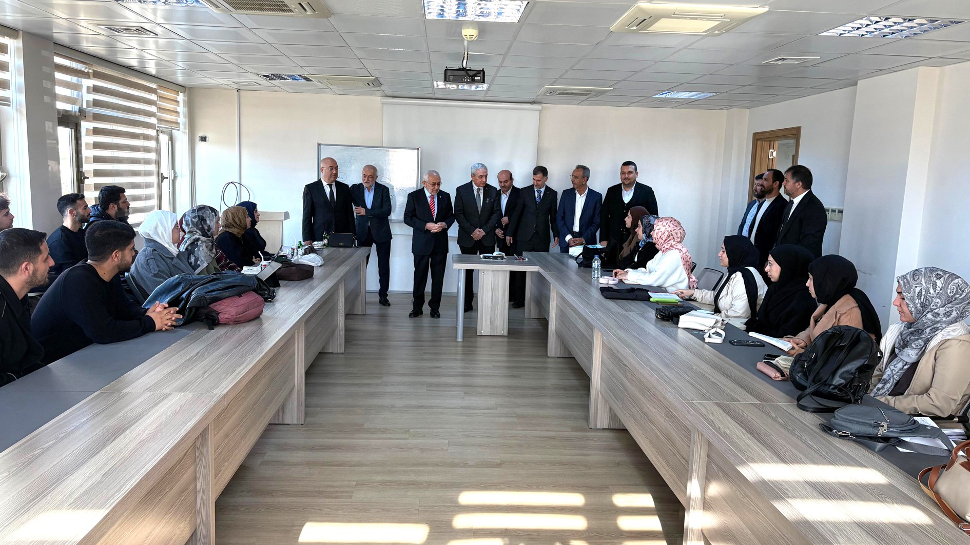 Programın ardından Türkiye Dil ve Edebiyat Derneği Genel Başkanı Ekrem Erdem ve beraberindeki heyet, Üniversitemiz İlahiyat Fakültesi’ni de ziyaret etti. İlahiyat Fakültesi Dekanımız Prof. Dr. Abdulvahid Sezen tarafından karşılanan heyet, öğrencilerimizle bir araya gelerek fakülteye ilişkin görüş alışverişinde bulundu.
