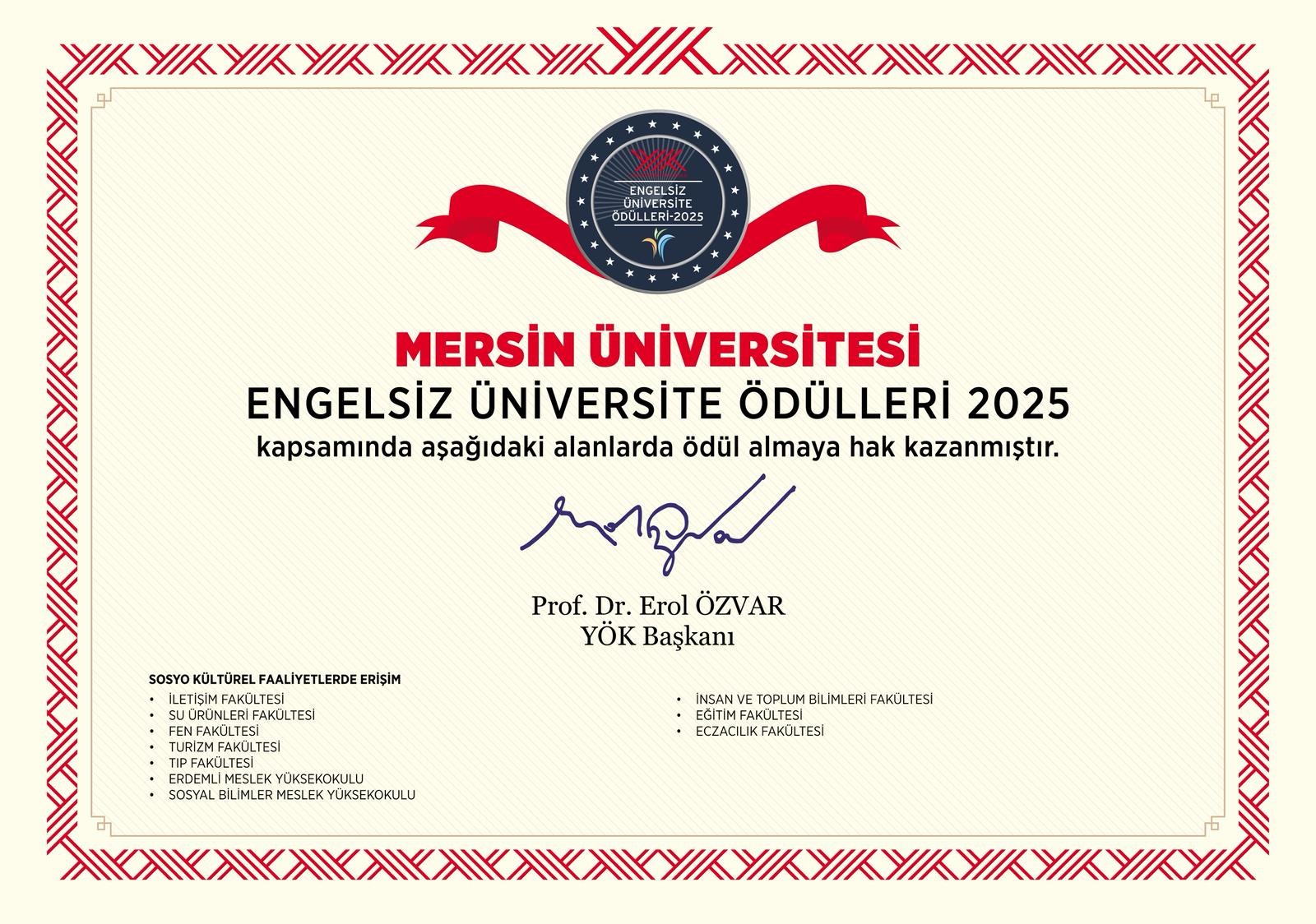 Üniversitemizin elde ettiği bu önemli başarı hakkında konuşan Rektörümüz Prof. Dr. Erol Yaşar “Üniversitemiz adına gurur verici bir günü yaşıyoruz. 10 bayrak ile Türkiye üçüncüsü olmak, sadece bir istatistiksel başarı değil; 'öğrenci odaklı üniversite' vizyonumuzun sahadaki en somut karşılığıdır. Bizim için erişilebilirlik, fiziksel düzenlemelerin ötesinde, eğitimde fırsat eşitliğini sağlamak ve her bir öğrencimizin kampüs yaşamına tam katılımını mümkün kılmak demektir. Bu ödüller, engelsiz bir eğitim ve yaşam alanı oluşturma kararlılığımızın Yükseköğretim Kurulu tarafından tescillenmesidir. Bu büyük başarıda emeği geçen Engelsiz Yaşam Birimimize, akademik ve idari personelimize teşekkür ediyorum. Hedefimiz, bayrak sayımızı artırarak Mersin Üniversitesi’ni her anlamda tamamen engelsiz bir kampüs haline getirmektir.” dedi.
