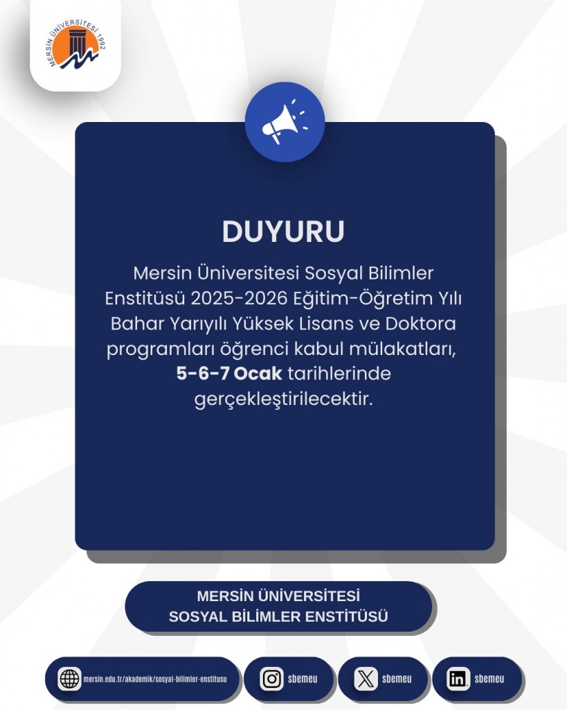 2025-2026 Yılı Bahar Dönemi Yüksek Lisans ve Doktora Mülakatları Başlıyor