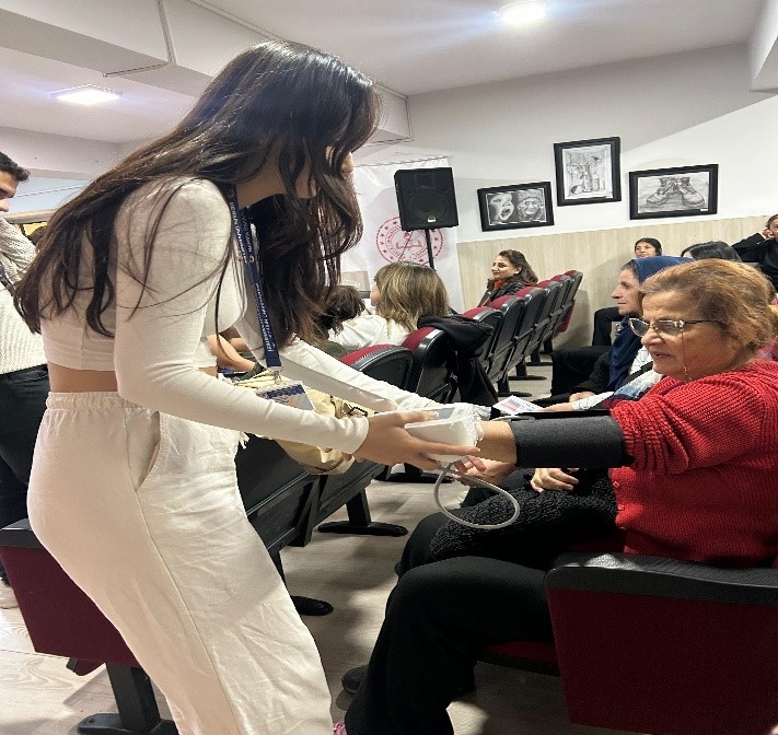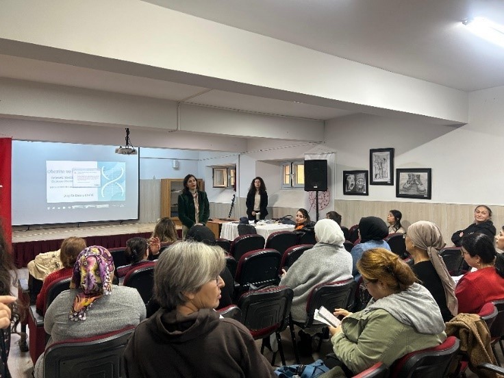 Mersin Üniversitesi Hemşirelik Fakültesi Halk Sağlığı Hemşireliği Ana Bilim Dalı ve Öğrenci Hemşireler Derneği Üyeleri Öğrenci Hemşire Rojbin Yıldız, Övgü Akgül, Ege Sovukluk, Sıla Çakır, Rabia Güzeloğlu, Rabia Arslan, Yağmur Kırcılı, Efe Tacirli, Elif İrem Baz, Hudanur Fidan tarafından yürütülen etkinlik, 19 Aralık 2025 tarihinde Mezitli ve Yenişehir, 26 Aralık 2025 tarihinde Akdeniz ve Toroslar Halk Eğitim Merkezlerinde gerçekleştirildi. Kursiyerlerin kilo, boy ve tansiyon ölçümleri yapılarak bireysel sağlık bilgilendirmesi yapıldı. Etkinlikte Doç. Dr. Emine Öncü obezite, epigenetik faktörler ve beslenmenin önemine ilişkin, Arş. Gör. Dr. Yeliz Vergi Akdeniz diyetinin temel ilkeleri ve sağlık üzerindeki olumlu etkilerine yönelik sunumlarını gerçekleştirdi.