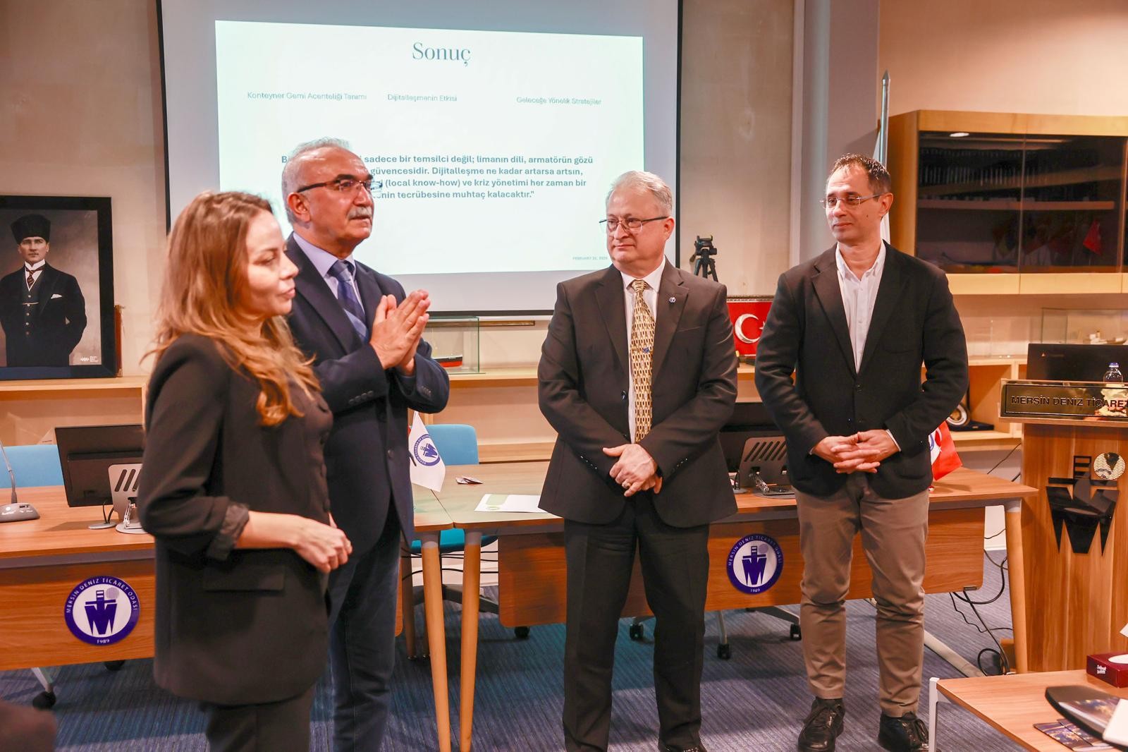 Sunumların bitiminin ardından soru cevap kısmında öğrencilerin Gemi Acente İşletmeciliği ve Lojistik mesleğine dair soruları yanıtlandı.
