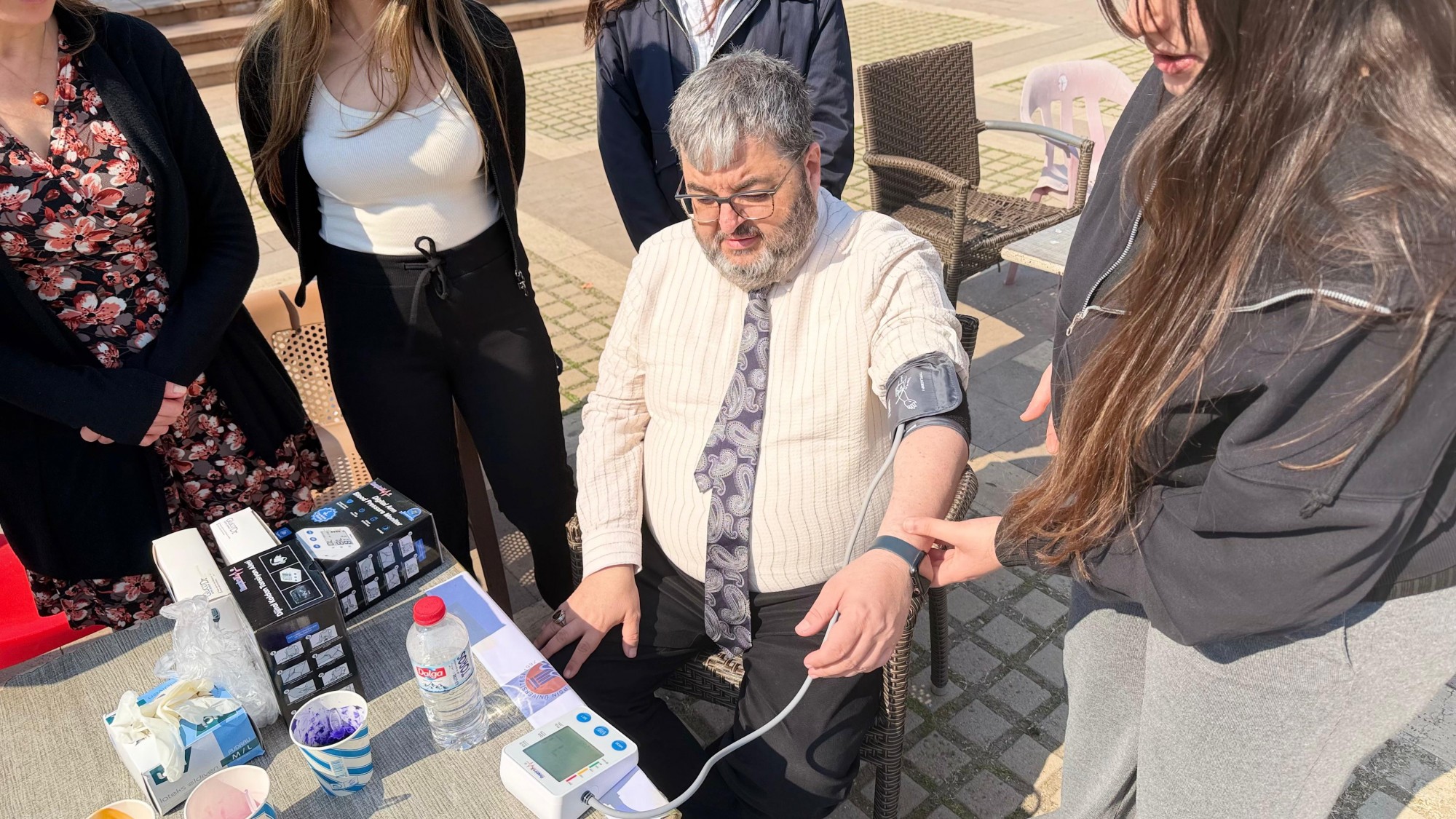 Sağlık Bilimleri Fakültesi Dekanı Prof. Dr. İlhan Ege de etkinlik alanını ziyaret ederek öğrencilerle bir araya geldi. Standı ziyaret eden Ege, gerçekleştirilen çalışmanın toplum sağlığı açısından önemine dikkat çekerek öğrencilerin bu tür sosyal sorumluluk faaliyetlerinde aktif rol almalarının değerli olduğunu ifade etti. Ziyareti sırasında ölçüm sürecine katılarak öğrencilere destek verdi.