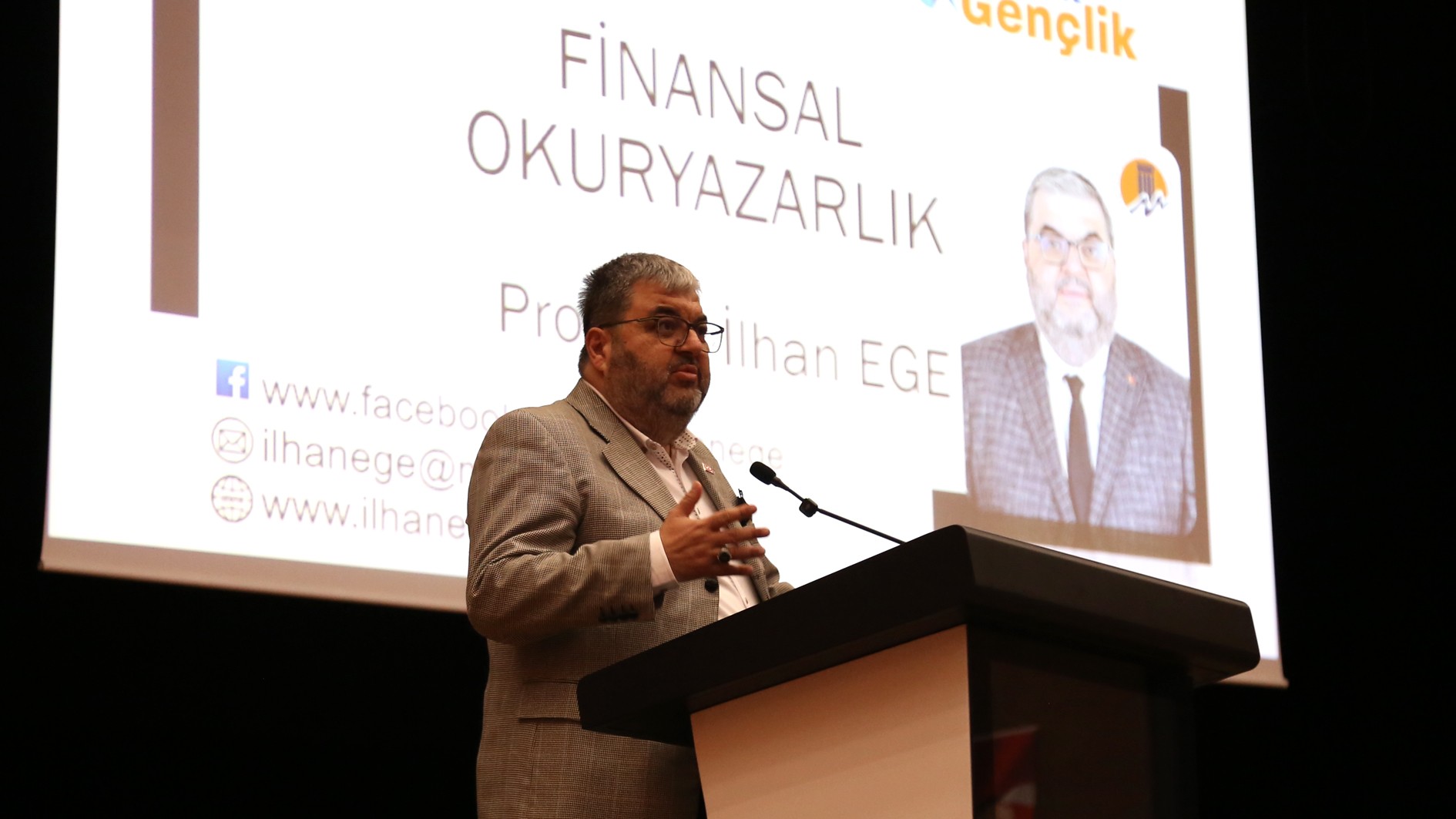Programın devamında Kariyer Merkezi Müdürümüz Prof. Dr. İlhan Ege tarafından gerçekleştirilen "Finansal Okuryazarlık" eğitimine geçildi. Konuşmasına planlama yapmanın gerekliliğine değinerek başlayan Prof. Dr. Ege, mesleki kariyer planlaması yapılırken finans ayağının da bu sürecin ayrılmaz bir parçası olduğunu ifade etti. Eğitimde finansal okuryazarlığın tanımı ve önemi üzerinde duran Prof. Dr. Ege; kişisel bütçe yönetimi, tasarruf alışkanlıkları, enflasyonun etkileri, temel yatırım araçları ve finansal risk yönetimi gibi konuları somut örneklerle ele aldı. Parayı doğru yönetme konusundaki farkındalığın önemini vurgulayan Kariyer Merkezi Müdürümüz, piyasa gerçekleriyle bağdaşmayan yüksek getiri vaatlerine ve yasal denetimi bulunmayan platformlara karşı dikkatli olunması gerektiğinin de altını çizdi.