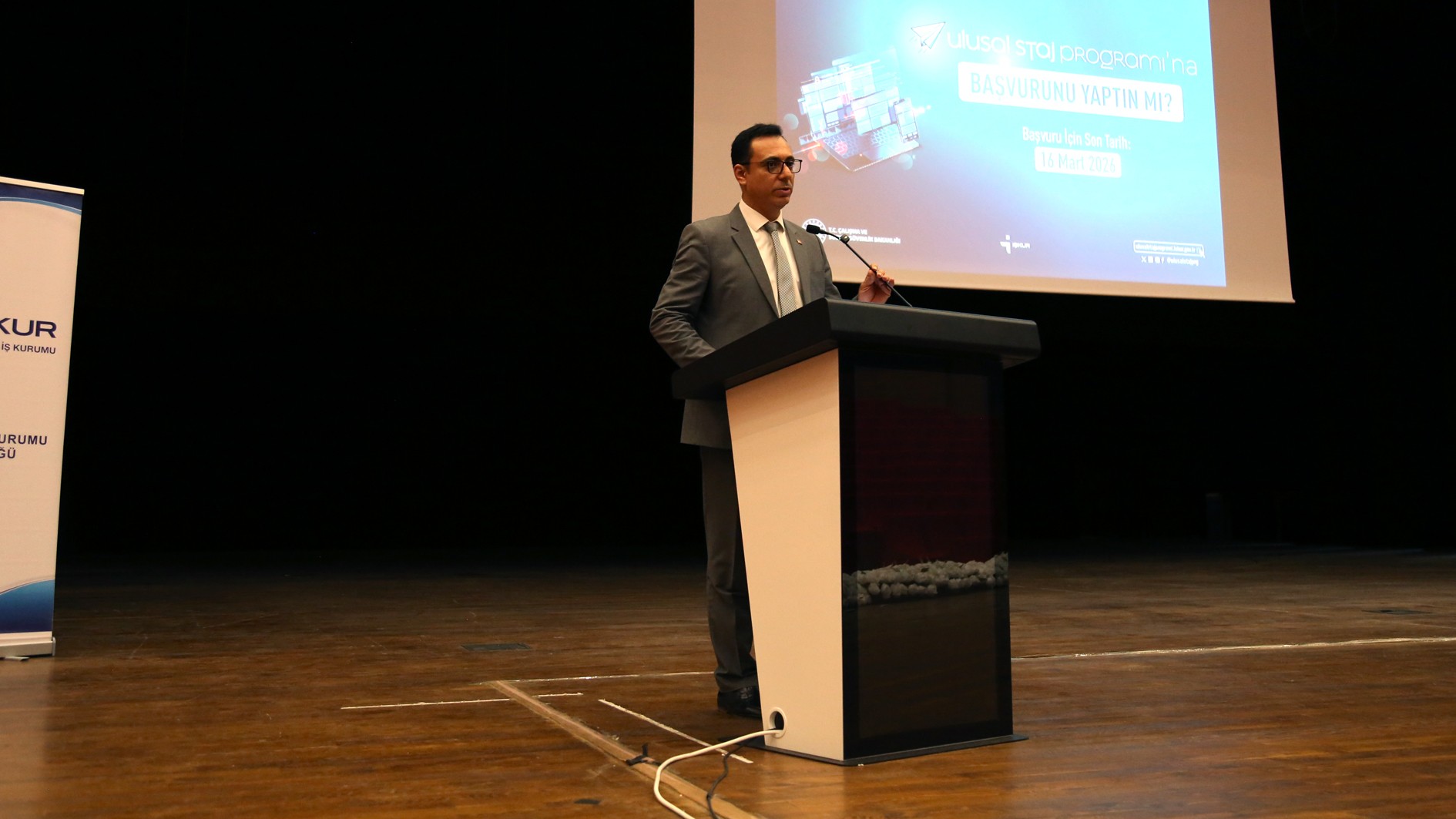 Konuşmasında Ulusal Staj Programı hakkında da bilgiler veren Ercan Gön; programa başvuru şartları, başvuru adımları ve staj ilanlarının takibi konularını detaylandırdı. İŞKUR Gençlik Programı'nda yer almanın Ulusal Staj Programı’na başvurmaya engel olmadığını hatırlatan Gön, başvuruların 16 Mart tarihine kadar devam edeceğini belirtti.