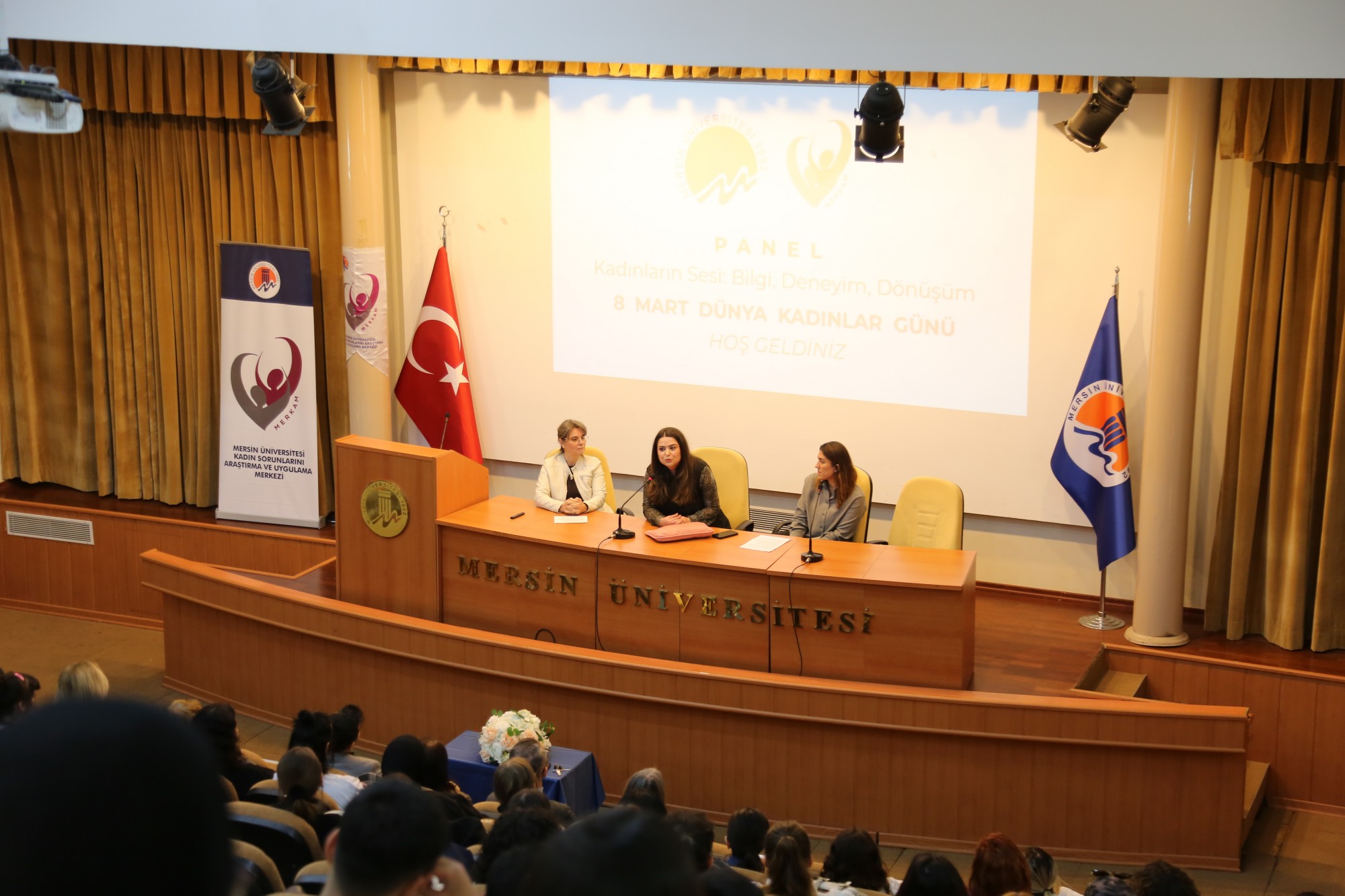Mersin Üniversitesi Kadın Sorunları Araştırma ve Uygulama Merkezi tarafından 8 Mart Dünya Kadınlar Günü etkinlikleri kapsamında düzenlenen “Kadınların Sesi: Bilgi, Deneyim ve Dönüşüm” başlıklı panel, 10 Mart 2026 Salı günü saat 10.15’te gerçekleşti. Etkinlik, Mersin Üniversitesi yerleşkesinde bulunan Prof. Dr. Uğur Oral Kültür Merkezi C Salonu’nda yapıldı.
