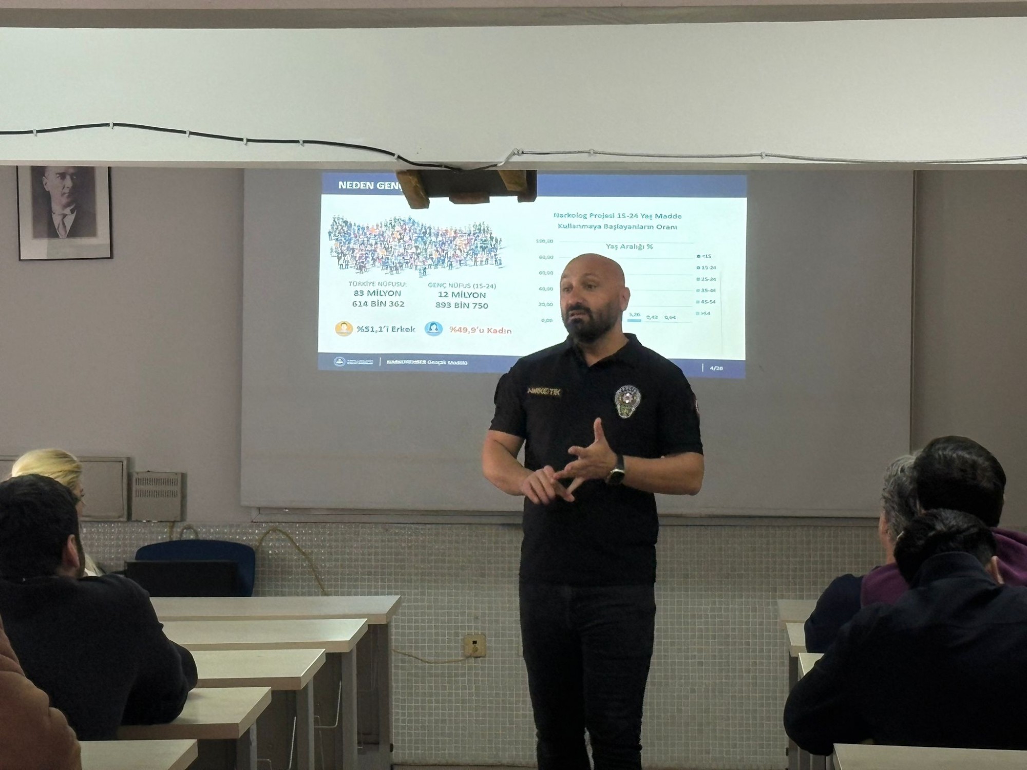 Gerçekleştirilen eğitim programında, uyuşturucu ve uyarıcı maddelerin bireyler ve toplum üzerindeki olumsuz etkileri ele alındı. Narkotik ekipleri tarafından verilen eğitimde, özellikle gençlerin madde bağımlılığına sürüklenmesini önlemek amacıyla erken farkındalık oluşturmanın önemine dikkat çekildi.