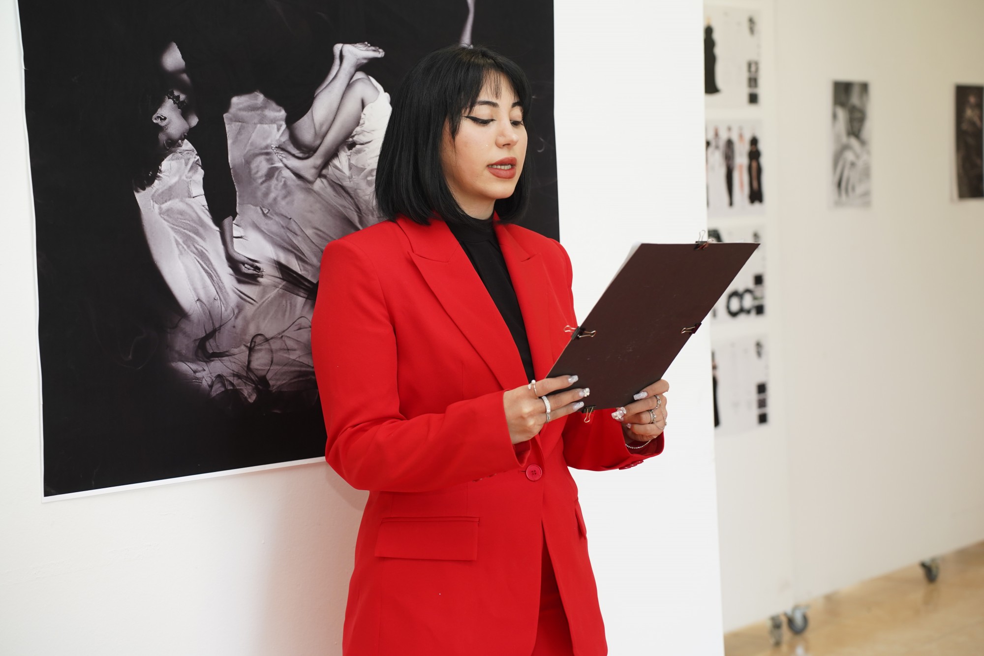 Tasarımcı öğrencimiz Fatmanur Çalık, defilenin açılışında yaptığı konuşmada koleksiyonunun felsefi altyapısını, “Bugün burada yalnızca bir defile izlemek için değil, aynı zamanda evrenin en kadim düşüncelerinden birinin estetik bir yorumuna tanıklık etmek için bir araya geldik. Yin ve Yang temalı bu sahnede göreceğiniz tasarımlar; siyah ve beyazın ötesinde, karşıtlıkların nasıl bir bütün oluşturduğunu anlatan bir hikâye sunacak. Her parça dengenin estetik bir yansıması, her adım uyumun ve dönüşümün bir ifadesi olacak.” sözleriyle anlattı.