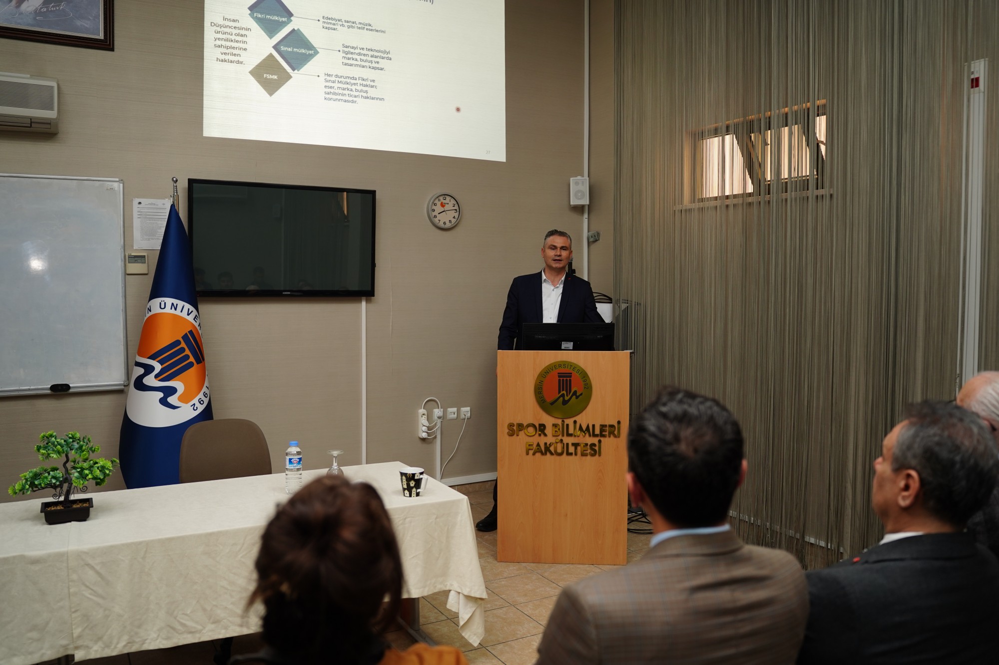 Toplantının son bölümünde TTO – FSMH Sorumlusu Ramazan DUMAN tarafından fikri ve sınai mülkiyet hakları, patent süreçleri ve üniversite kaynaklı buluşların ticarileştirilmesine yönelik bilgilendirici bir sunum gerçekleştirildi. Sınai Mülkiyet Kanunu çerçevesinde üniversitelerde yürütülen patent başvurularının önemi ve uygulama örnekleri Spor Bilimleri Fakültesi katılımcılarıyla paylaşıldı. Araştırma Dekan Yardımcısı Prof. Dr. Yasemin YUYUCU KARABULUT ve Teknik Koordinatör Öğr. Gör. Dr. Aynur GÜRBÜZ sunuma değerli görüşleriyle katkıda bulundu.