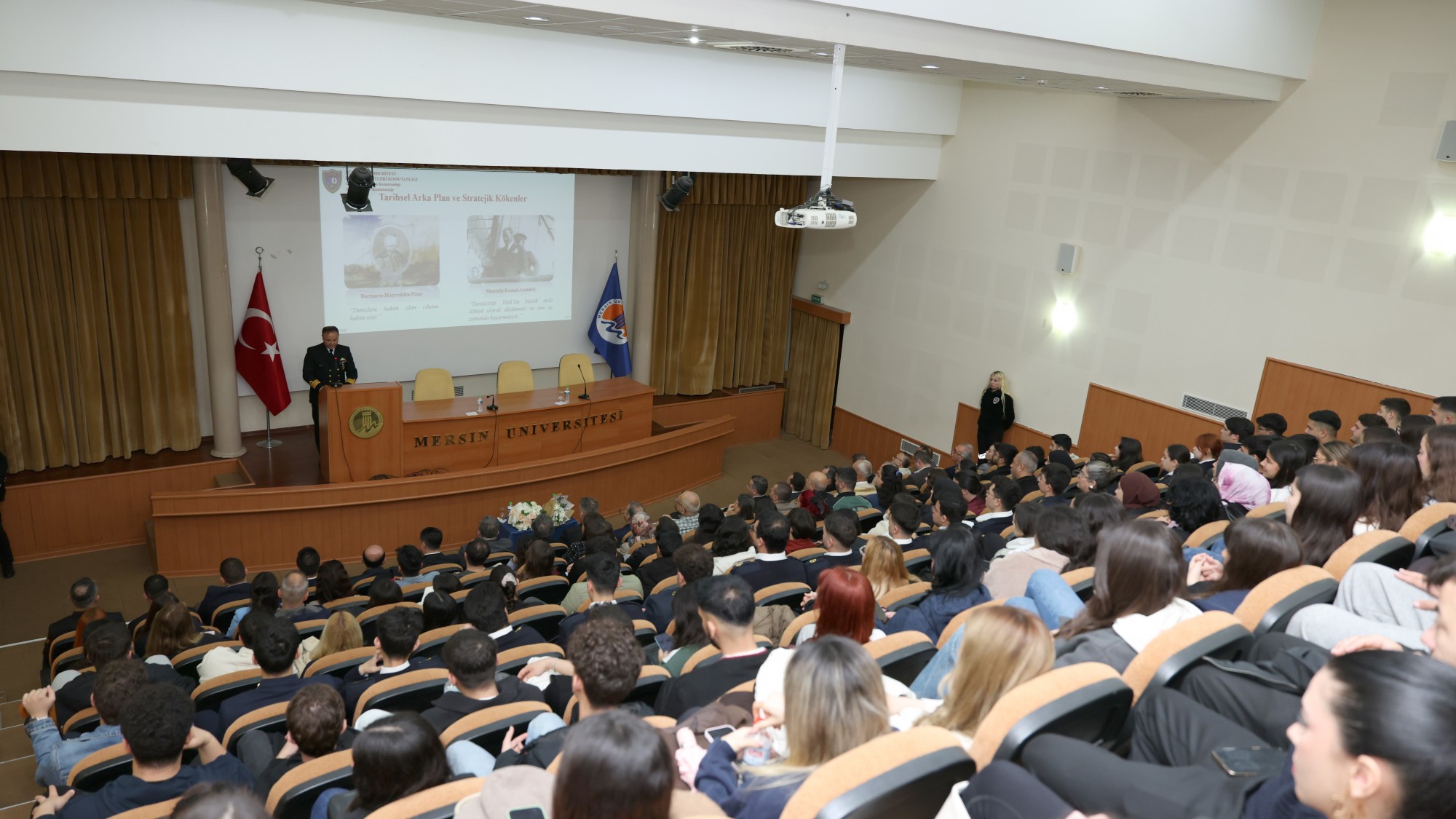 Açılış konuşmasının ardından konferans sunumuna geçildi. Dz. Yb. Serkan Karslı tarafından gerçekleştirilen kapsamlı sunumda Mavi Vatan kavramının tarihsel arka planı; Barbaros Hayreddin Paşa'nın "Denizlere hakim olan cihana hakim olur" ve Gazi Mustafa Kemal Atatürk’ün "Denizciliği Türk’ün büyük milli ülküsü olarak düşünmeli ve onu az zamanda başarmalıyız" sözleri üzerinden katılımcılara aktarıldı. Türkiye’nin deniz yetki alanlarının dış sınırlarını kapsayan Mavi Vatan stratejisinin; ana kara, su yüzeyi, su kütlesi, suyun altındaki zemin ve bunların üzerindeki hava sahasından oluştuğu belirtildi.