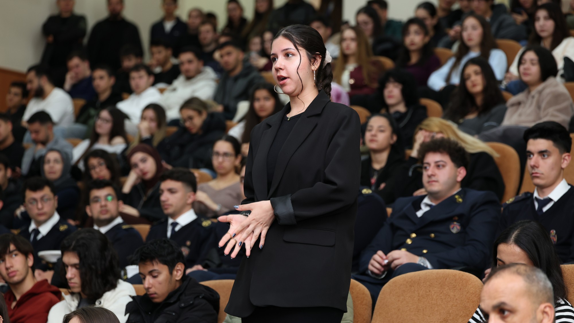 Programın kapanışında sahneye gelen Rektörümüz Prof. Dr. Erol Yaşar, ufuk açıcı ve değerli bilgiler sunan Dz. Yb. Serkan Karslı’ya Üniversitemiz adına teşekkür ederek günün anısına plaket takdim etti.