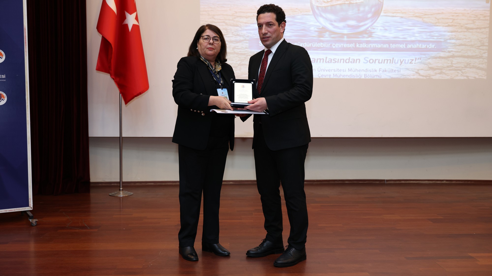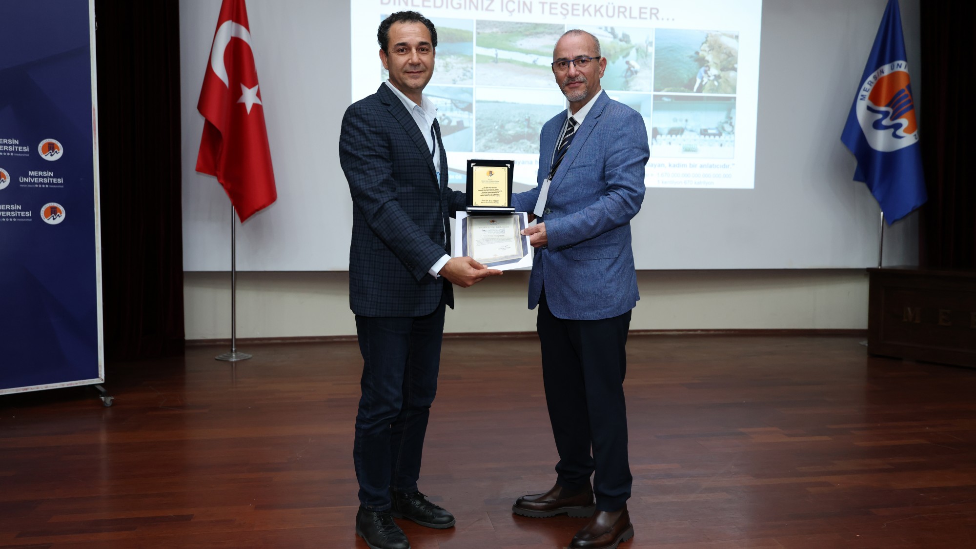 Açış konuşmasının ardından çalıştayın ilk sunumunu, "Küresel İklim Değişikliği ve Su" başlıklı konuşmasıyla İstanbul Teknik Üniversitesi (İTÜ) Meteoroloji Mühendisliği Bölümünden Prof. Dr. Mikdat Kadıoğlu gerçekleştirdi. Sunumun ardından Rektörümüz Prof. Dr. Erol Yaşar tarafından Prof. Dr. Kadıoğlu’na plaket takdim edildi.