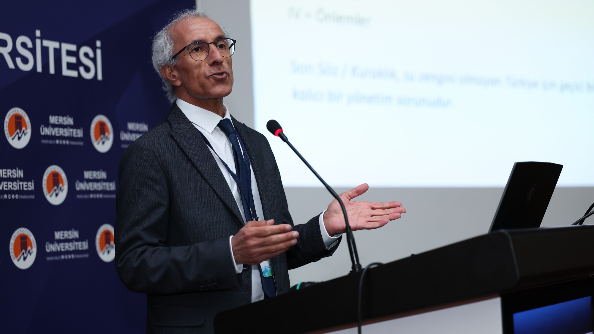 Öğleden sonraki oturumlarda su sorunları farklı disiplinlerin perspektifinden değerlendirilerek bütüncül bir sunum zinciri oluşturuldu. İTÜ İnşaat Mühendisliği Bölümünden Prof. Dr. Hafzüllah Aksoy "Kuraklık Stresi Altında Türkiye'nin Su Kaynakları" konusunu ele alırken, hemen ardından Üniversitemiz Jeoloji Mühendisliği Bölümünden Prof. Dr. Cüneyt Güler "Mersin İlinin Yeraltı Suyu Sorunları" başlıklı sunumunu yaptı. ODTÜ Deniz Bilimleri Enstitüsünden Dr. Öğr. Gör. Evrim Kalkan Tezcan'ın "İklim Değişikliğinin Deniz Ekosistemleri Üzerindeki Etkileri: Mersin Körfezi Örneği" başlıklı çalışmasını aktarmasının ardından, Mersin Orman Bölge Müdürlüğünden Orman Mühendisi İsmail Gübeş "Küresel Isınma ve İklim Değişiminin Anamur Bölgesine Etkileri: Kuraklık Riskleri ve Uyum Önlemleri" üzerine kapsamlı bir değerlendirme sundu.