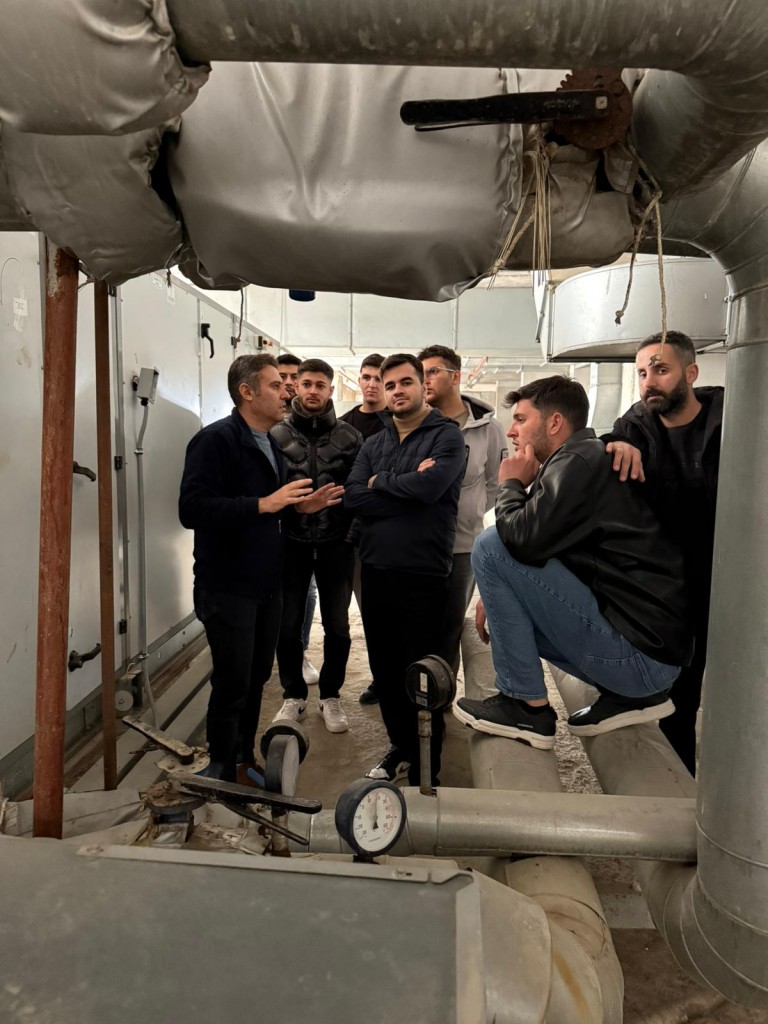 Modern İklimlendirme Sistemleri Yerinde İncelendi Hastane teknik birim sorumlularından Mustafa Bey’in rehberliğinde gerçekleştirilen gezide, sağlık tesisleri gibi hassas alanlarda hayati önem taşıyan iklimlendirme altyapısı detaylıca ele alındı. Öğrencilere;