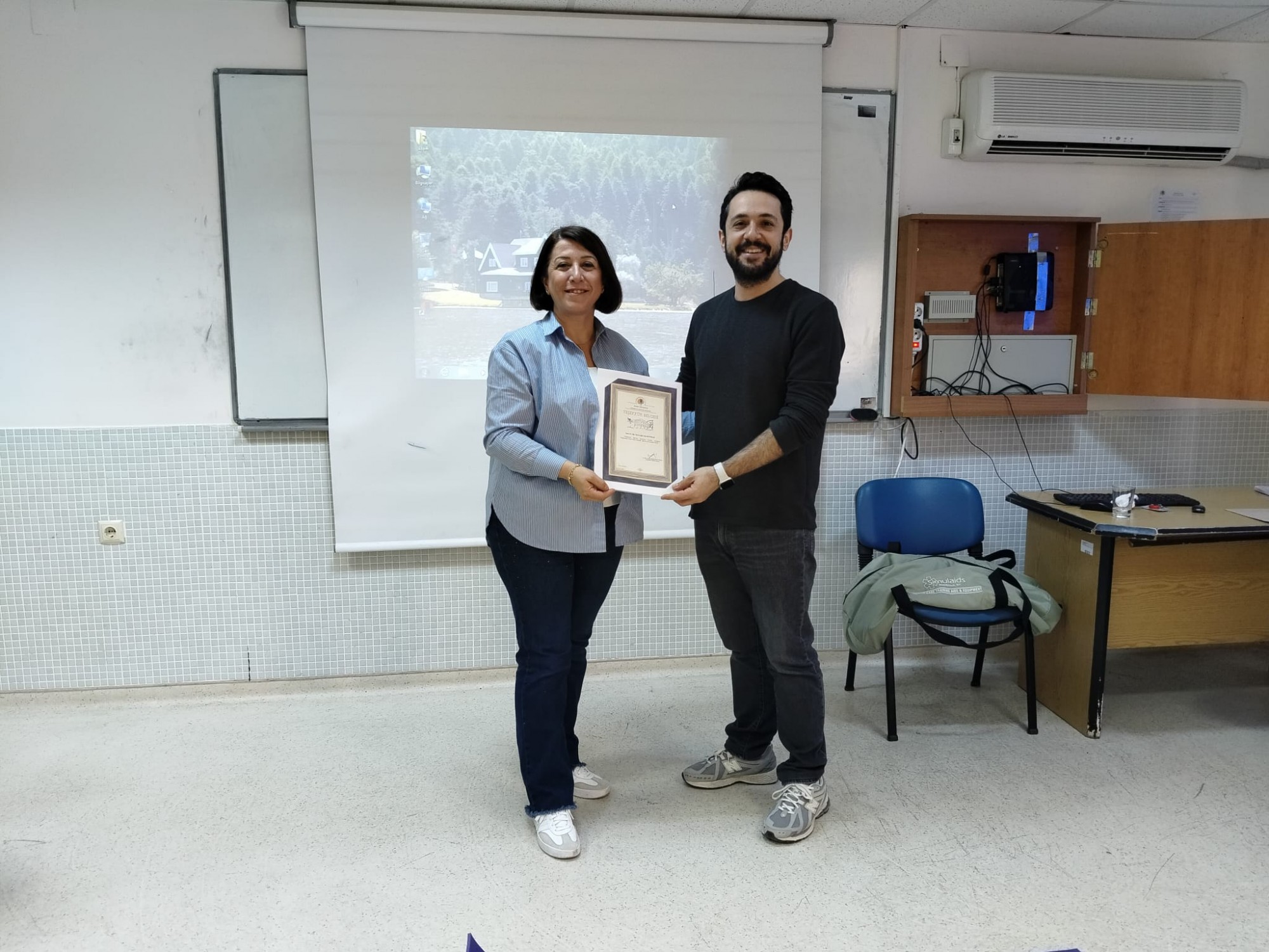 Program sonunda, eğitime sunduğu değerli katkılar dolayısıyla eğitimi veren Dr. Öğretim Üyesi Çağrı Safa BUYURGAN’a teşekkür belgesi, fakültemiz Dekanı Prof. Dr. Duygu VEFİKULUÇAY YILMAZ tarafından takdim edildi. Katkılarından dolayı kendilerine teşekkür ederiz.