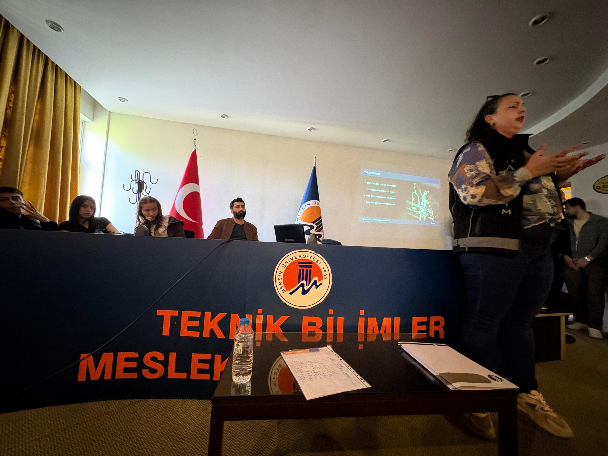Meslek Yüksekokulumuz Konferans Salonunda, 13 Nisan 2026 tarihinde Mersin İl Emniyet Müdürlüğü Narkotik Suçlarla Mücadele Şube Müdürlüğünden gelen uzman Polis memurları tarafından Madde Bağımlılığı ile Mücadele Eğitimi düzenlendi.
